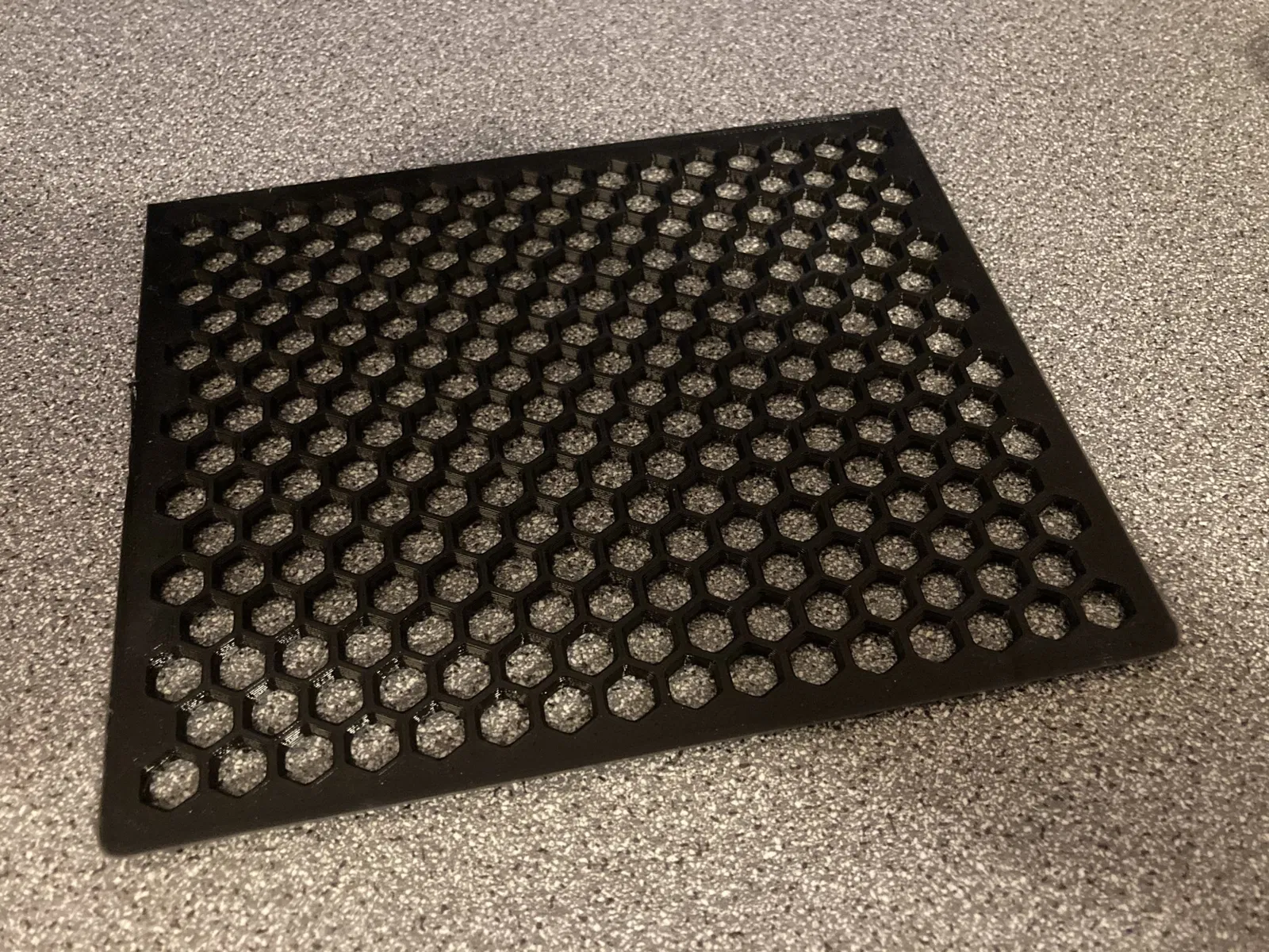 Nó không hoàn hảo theo bất kỳ cách nào, mẫu thiết kế hơi lệch tâm, tôi chỉ không biết cách làm nó như thế nào. Tôi sẽ sửa nó sau khi tôi hiểu rõ hơn về phần mềm. Ngoài ra, mẫu tổ ong đã làm onshape bị treo nhiều lần, tôi cá rằng đó là vấn đề của người dùng và thiết kế nhiều hơn là vấn đề của onshape.