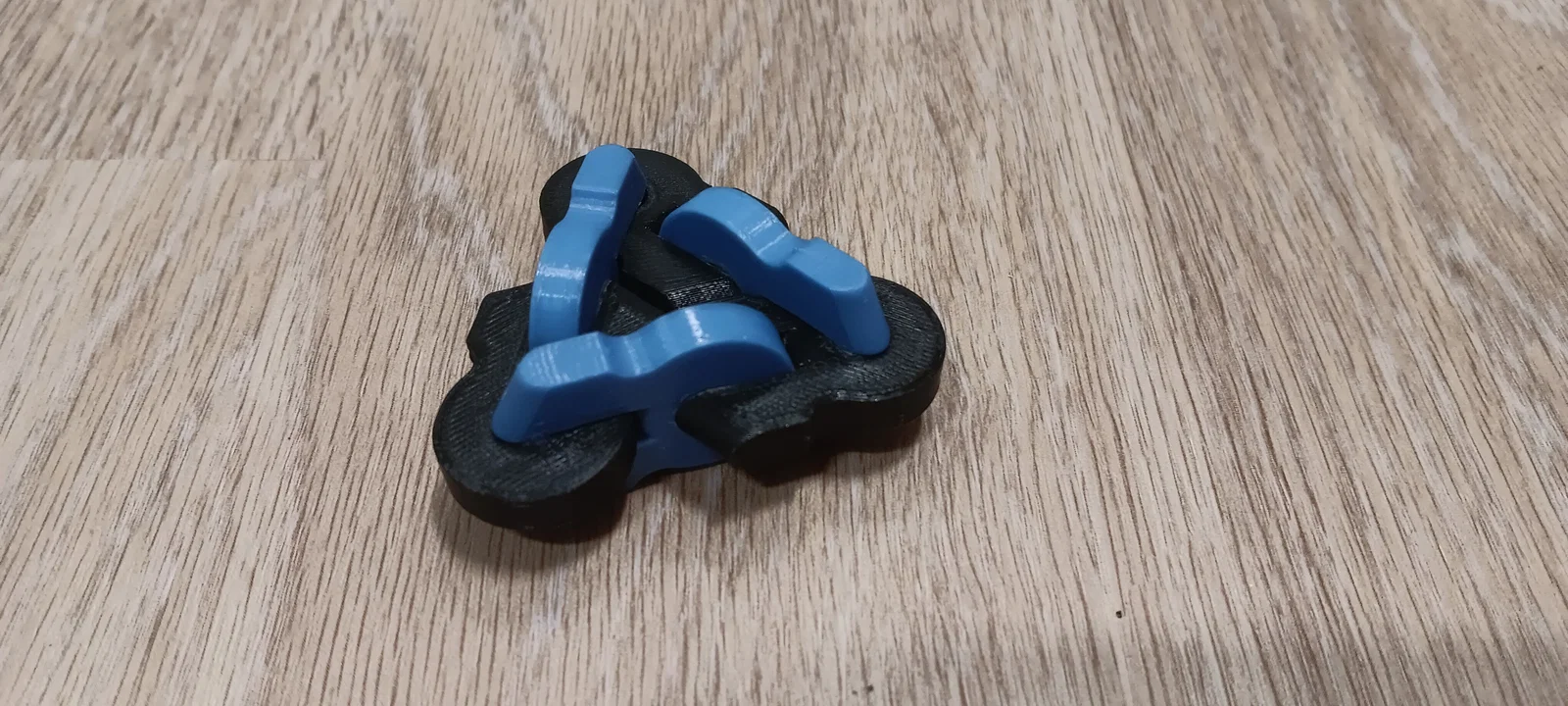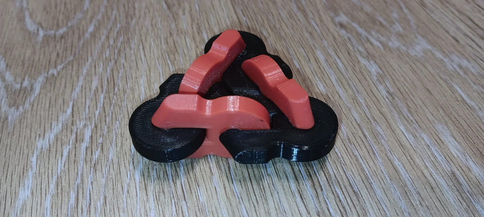 Mẫu đồ chơi fidget dạng tam giác kiểu infinity, cảm giác giống fidget cube. Cần 6 miếng để lắp (lồng vào nhau). In bằng PLA, nozzle 0.4 mm, infill 15%, không cần supports; rất hợp làm quà.