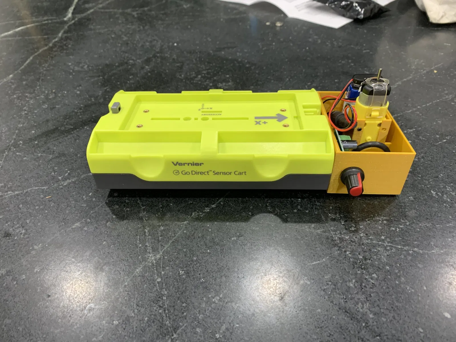 Đây là một phụ kiện đơn giản cho bất kỳ xe vật lý động lực nào có nam châm được đặt cách nhau 1-7/8". Các đường hoặc rãnh có thể được tạo ra trên khung để bạn có thể căn chỉnh núm để lặp lại tốc độ cho các thử nghiệm.