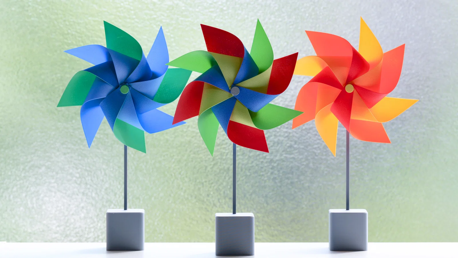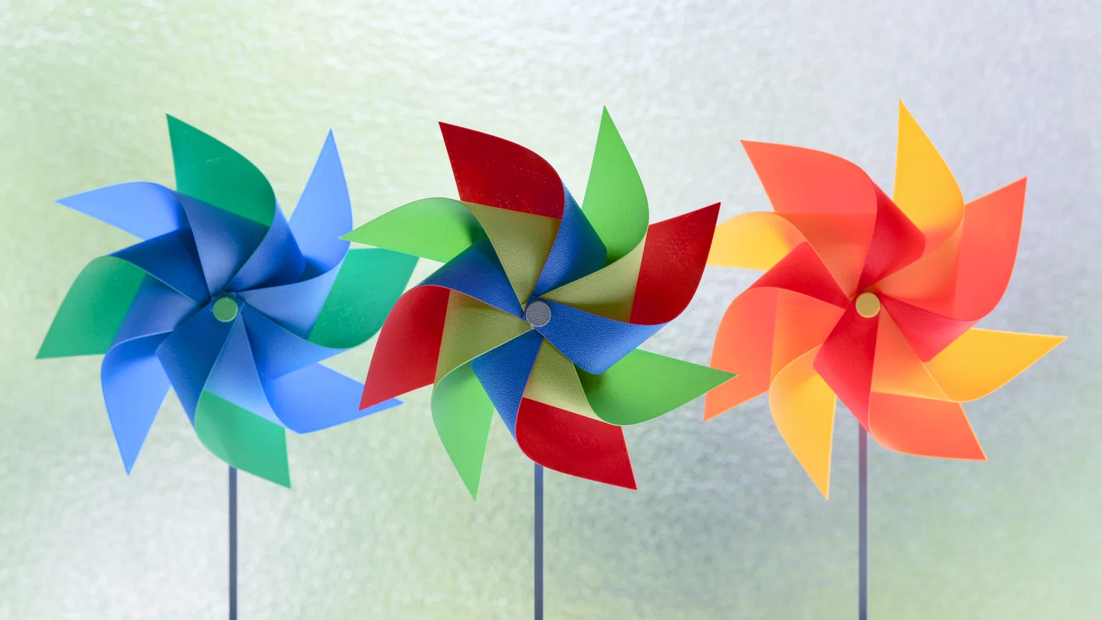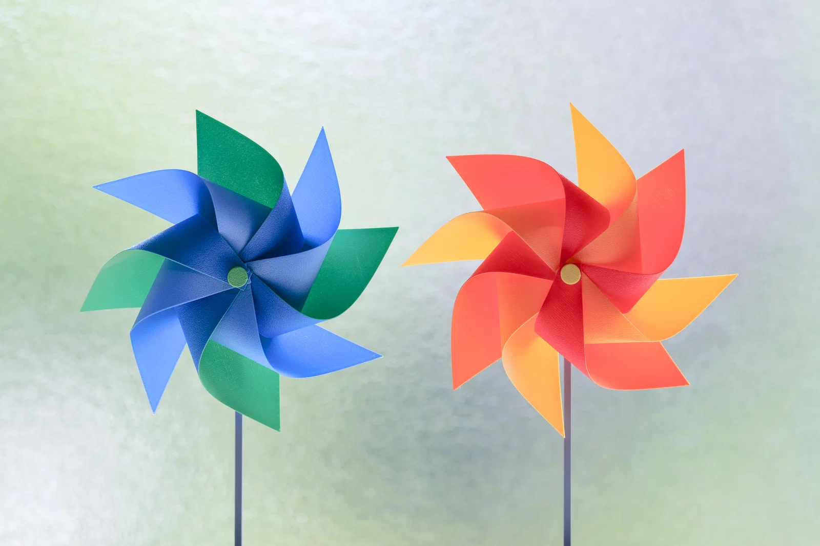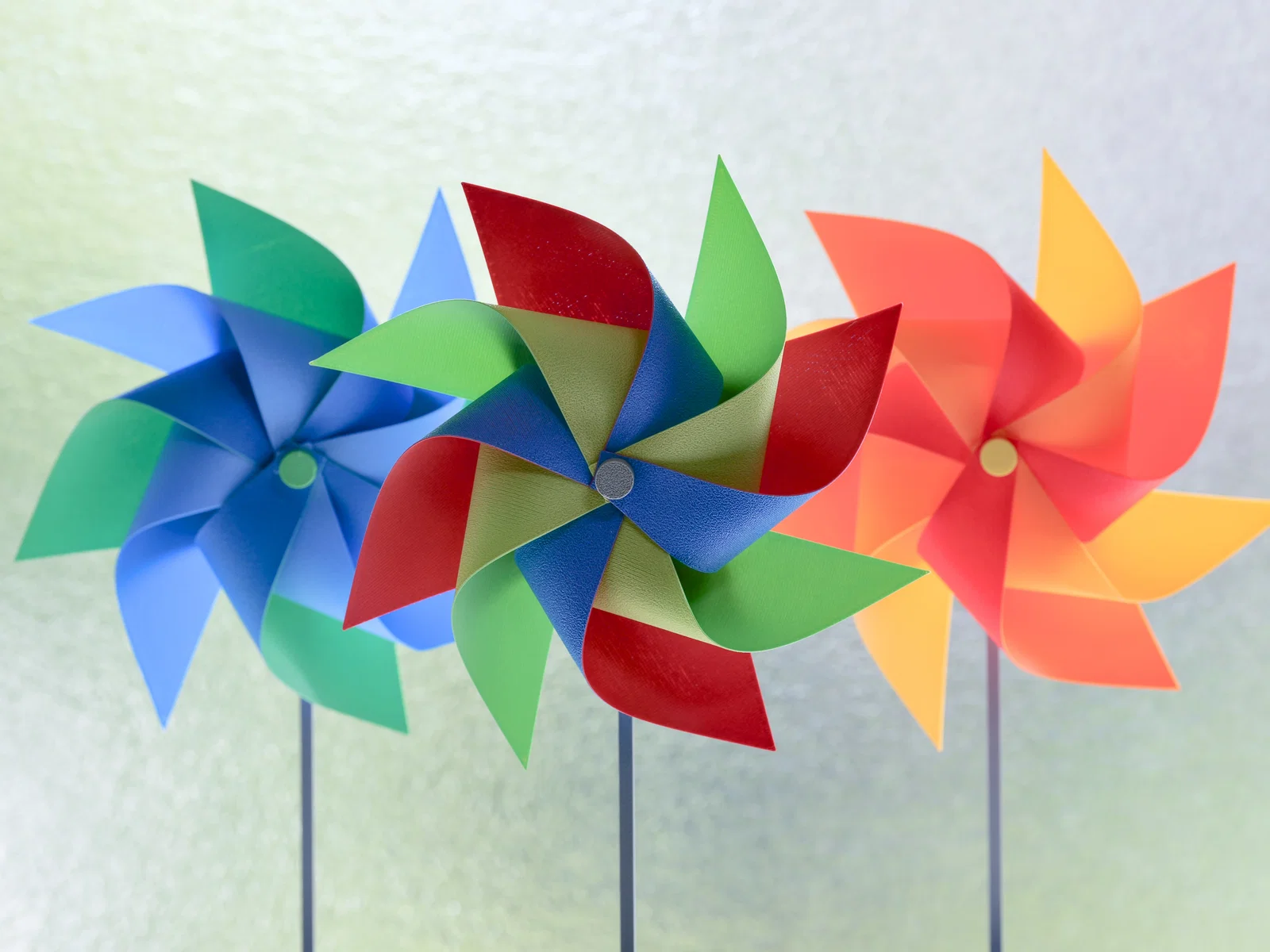 Chong chóng gió hai lớp lấy cảm hứng từ origami, sẽ quay khi bắt gió để bạn cảm nhận làn gió nhẹ ở bất cứ nơi nào đặt. Có thể phối tối đa 4 màu khác nhau để trang trí không gian thêm nổi bật.