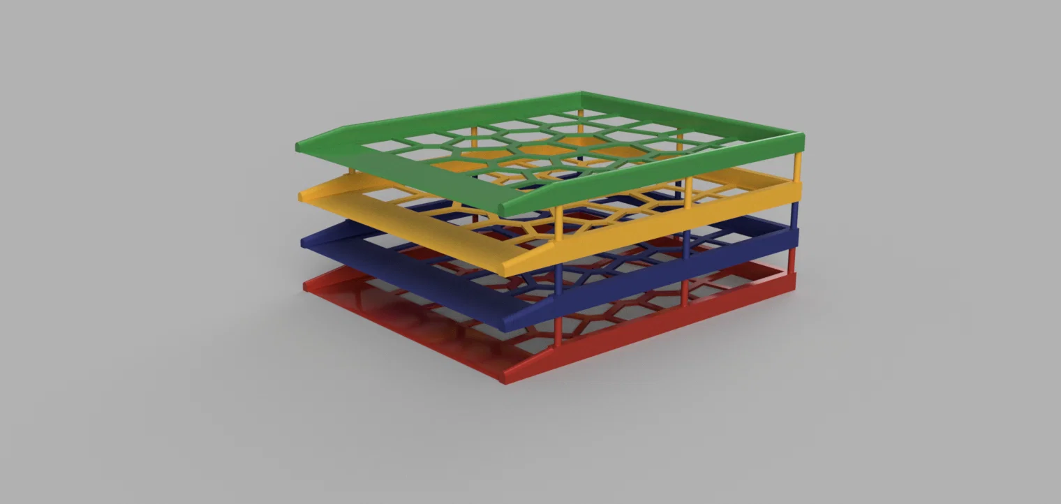 Khay giấy modular có thể xếp chồng để đựng các tờ giấy tiêu chuẩn. In số lượng phần bạn cần; yêu cầu mặt in tối thiểu 28×24cm. Có thể đặt dọc/ngang và không dùng supports để còn stackable.