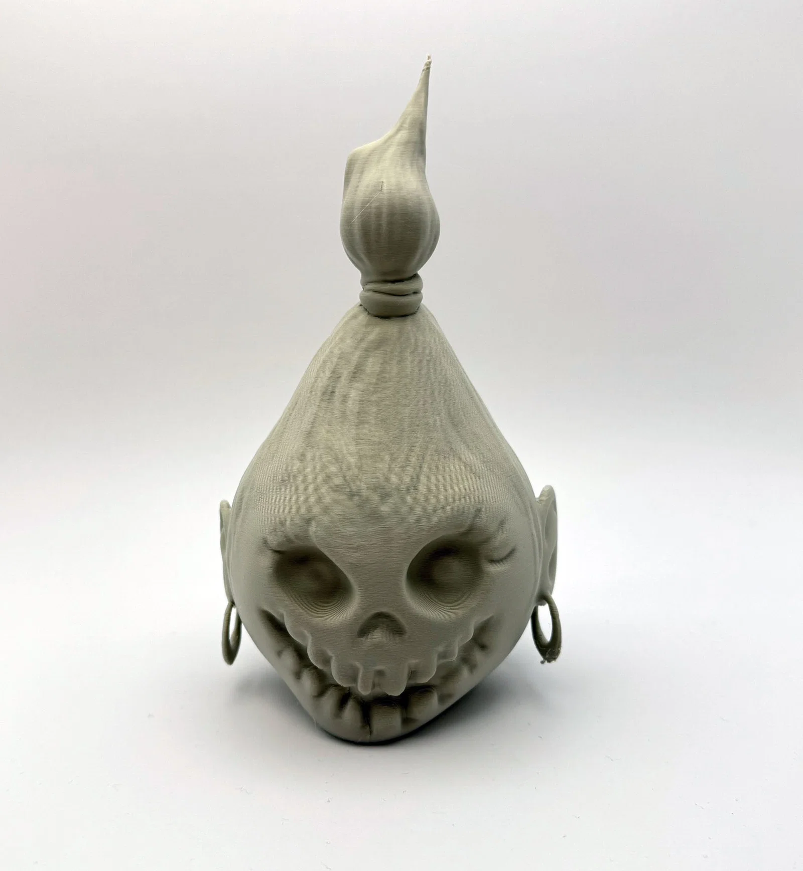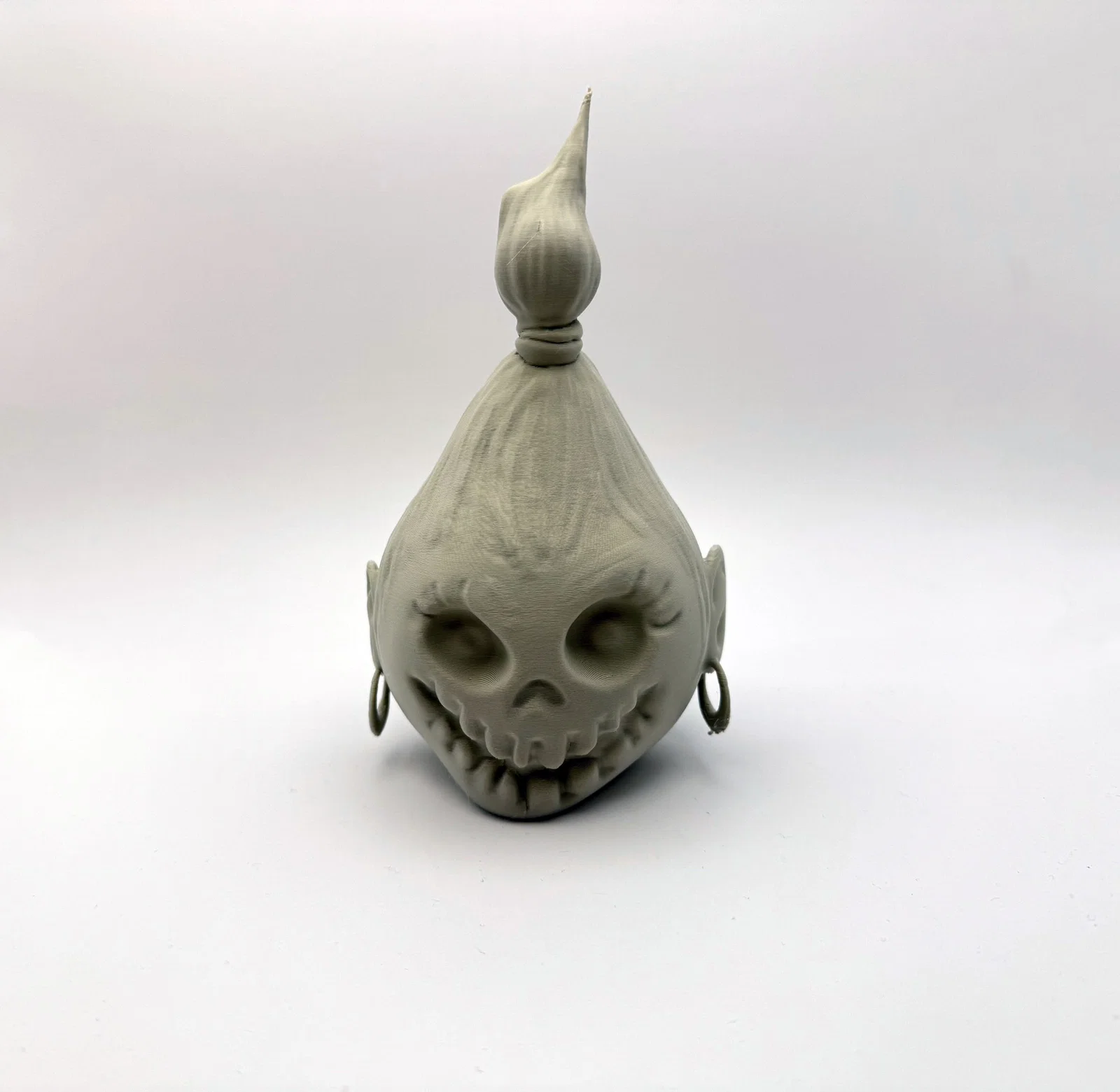 Mẫu Shrink Head kiểu rùng rợn dùng để trang trí Halloween. Có vòng ở phía sau để treo bằng sợi dây. Khi in cần supports; lúc tháo supports quanh bông tai nhớ làm nhẹ tay để không làm gãy chi tiết.