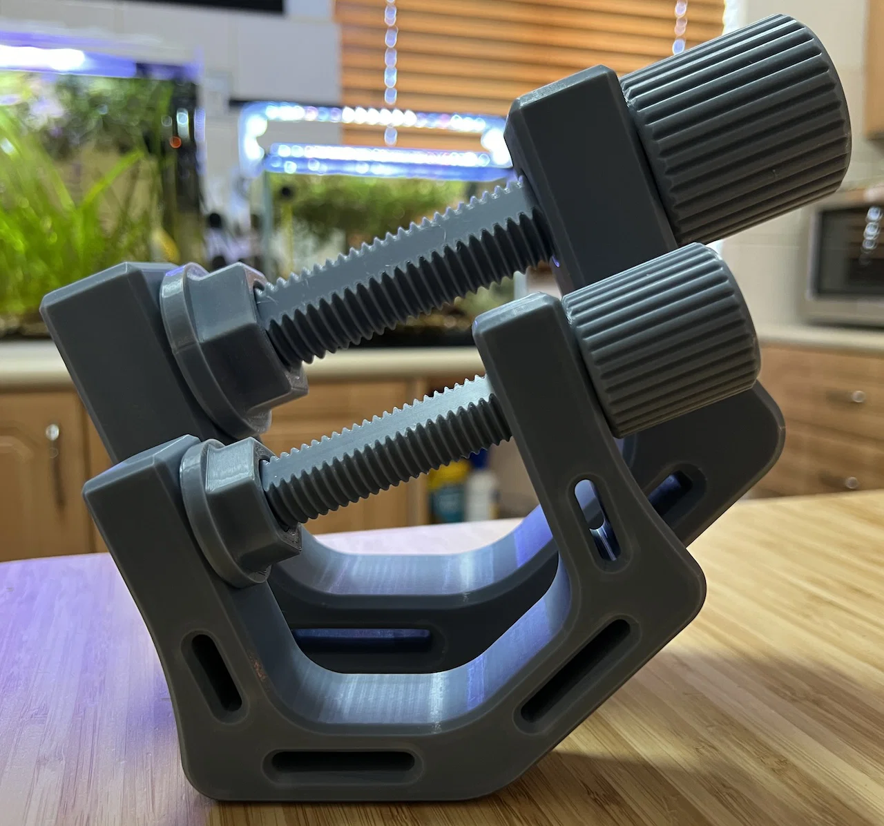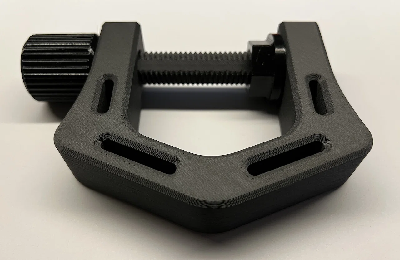 Để đạt độ bền tối đa, mình khuyên in tối thiểu 6 walls/perimeters và 20% infill, ưu tiên dùng polymer có pha carbon fiber. Nếu không thì PETG hoặc PLA cũng ổn với cùng thông số, cho nhu cầu kẹp tải nhẹ hơn.