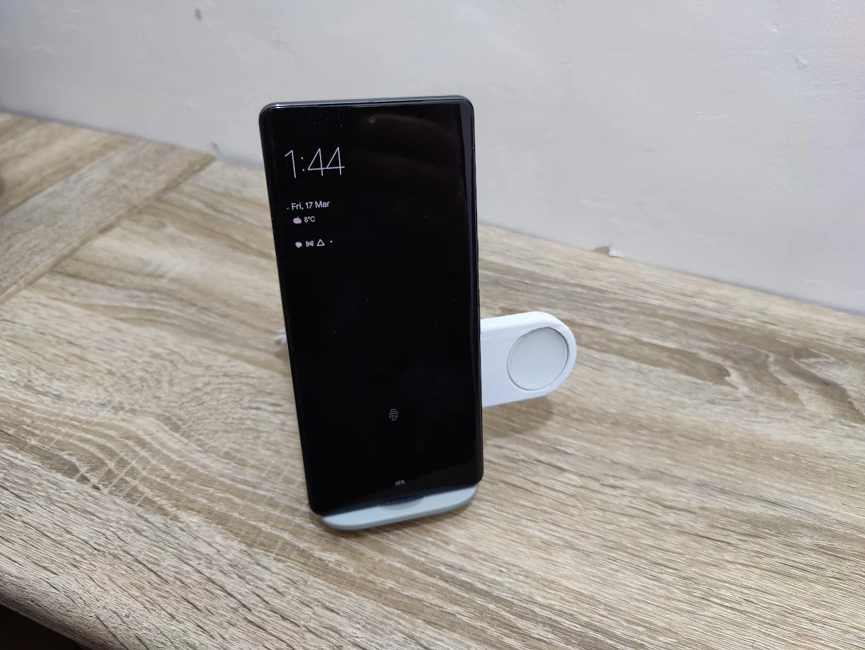 Một chiếc kẹp tối giản giúp bạn sạc Pixel Watch ngay trên đế sạc Pixel Stand. Thiết kế này tối ưu khoảng cách để đảm bảo điện thoại vẫn sạc được ngay cả khi dùng ốp dày, hỗ trợ cả hai bên trái và phải cho bạn dễ dàng lắp đặt.