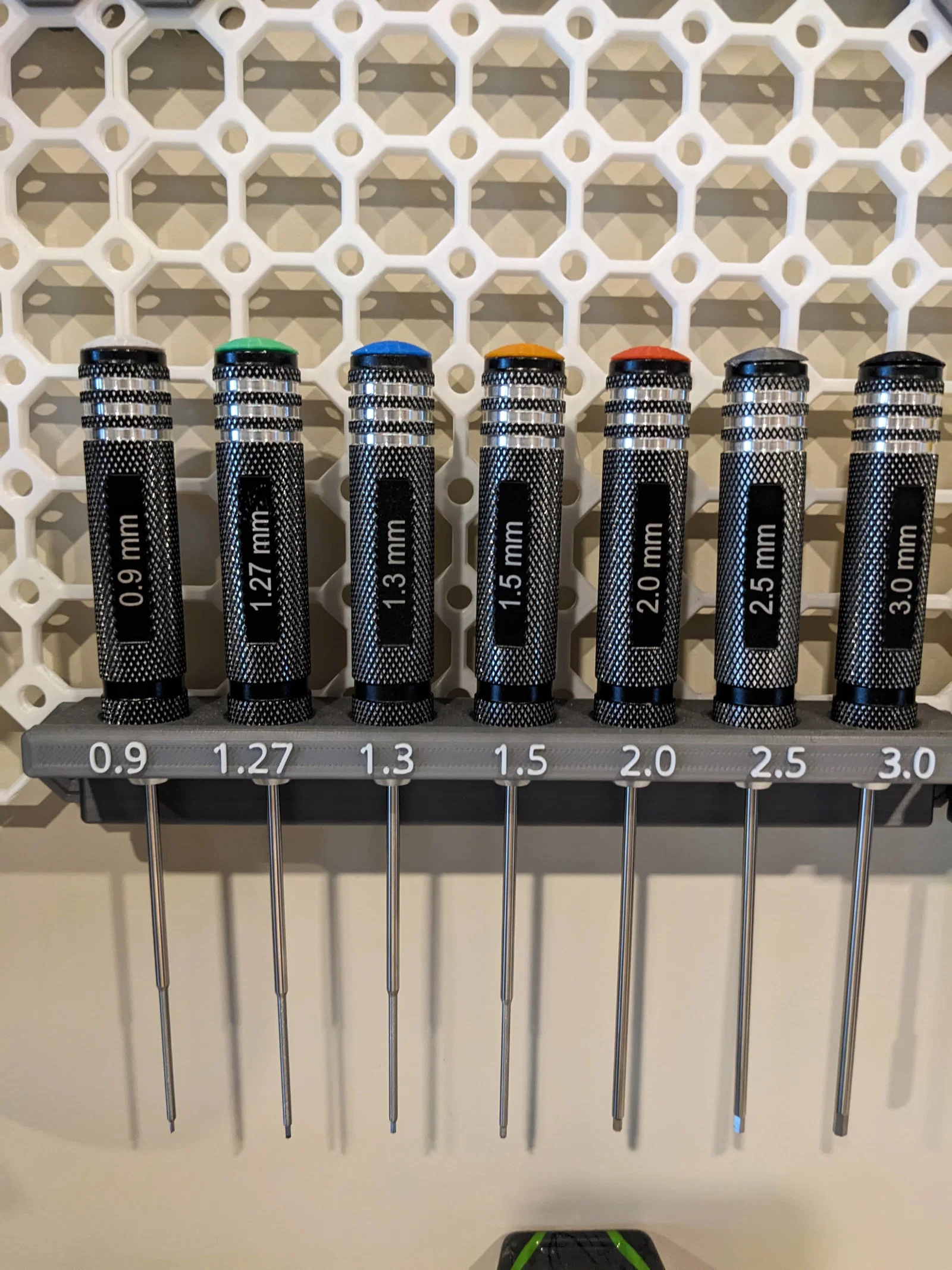Mẫu giá đỡ hex screw driver cho multiboard, dùng chuẩn multiconnect để gắn lên bảng. Face plate in riêng để đổi màu, làm chữ dễ thấy hơn và nhìn rõ khi sắp xếp dụng cụ.