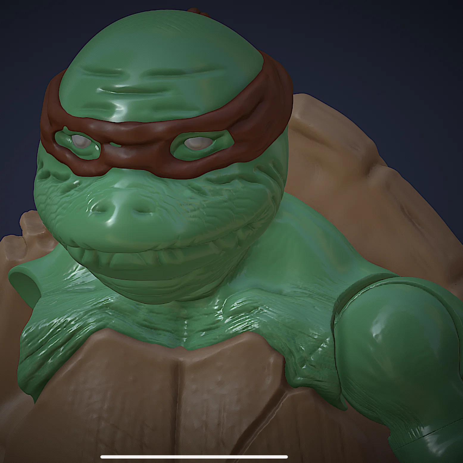 Mình nảy ra ý tưởng làm một action figure dựa theo đồ chơi Teenage Mutant Ninja Turtles thập niên 90. Nhưng mình nghĩ sẽ hài hơn nếu làm phiên bản lớn tuổi, hơi xuống sức, mất dáng. Mình sculpt vui lắm, nhưng như bạn thấy đó, cũng không có nhiều thứ để “biến tấu”. Mình giảm bớt độ nét ở tay, thêm bụng, thêm nếp nhăn. Mình còn cho ổng dáng đứng xấu, gù gù nữa. Cũng chẳng còn gì để làm thêm!