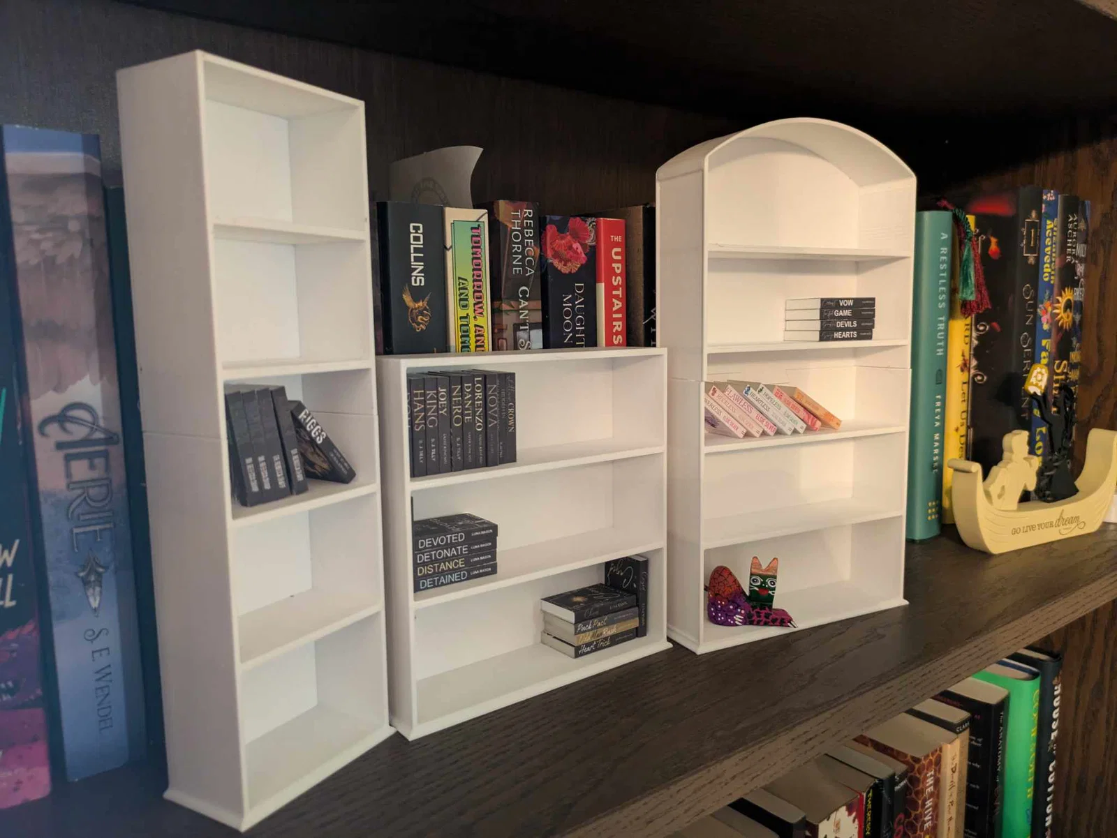 Đây là một bộ gồm ba kệ sách mini được làm cho một dự án thủ công. Bạn có thể scale (phóng/thu tỉ lệ) và dùng cho tabletop games hoặc có thể cho đồ chơi trẻ em/nhà búp bê.