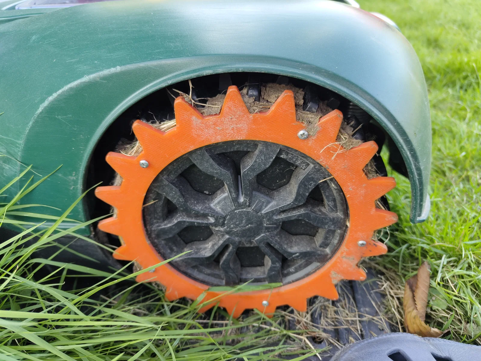 Tôi không hài lòng lắm với khả năng di chuyển của máy cắt cỏ trên bãi cỏ không bằng phẳng của mình, nên tôi đã tự thiết kế và in bộ gai bám (spikes) này. Bạn có thể dễ dàng bắt vít cố định vào bánh xe bằng các loại vít gỗ hoặc vít kim loại nhỏ. Thiết kế này có thể được phóng to lên một chút nếu cần, nhưng kích thước mặc định cũng đã rất vừa vặn rồi.