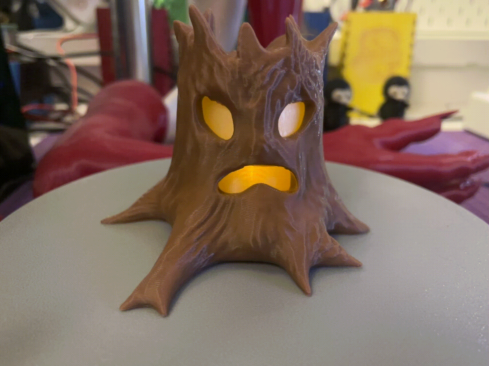 Mẫu gốc cây “Haunted Tree” dễ in, dùng để đặt nến điện chạy pin bên trong tạo hiệu ứng phát sáng rùng rợn cho Halloween. In phần cây với support thường, phần cover lật ngược không cần support; có thể scale to nhỏ tùy ý.