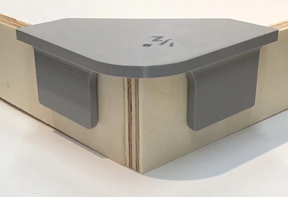 Jig push-on đỡ góc hộp/khung gỗ khi dán keo hoặc đóng đinh. Có 2 cỡ 1/2" và 3/4" cho plywood; có thể scale X&Y để ra cỡ khác và rescale Z để giảm chiều cao. In PLA vẫn rất chắc.