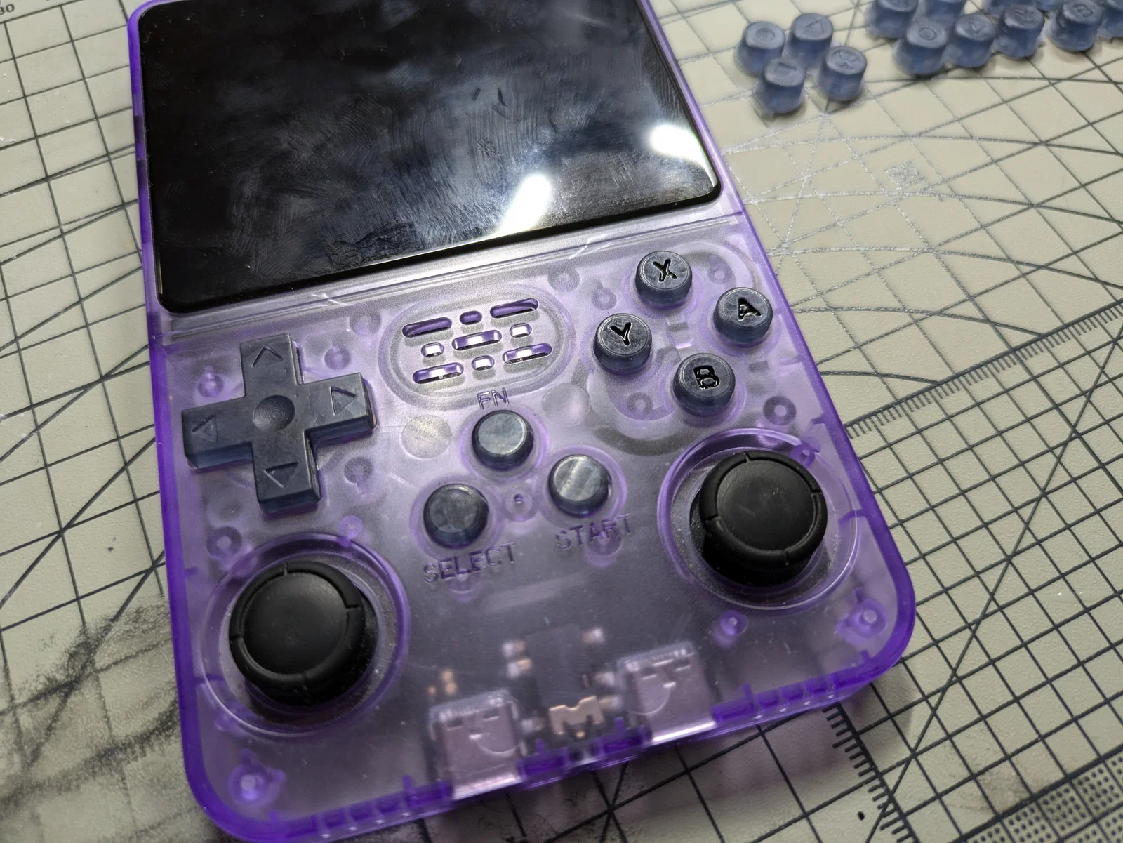 Bộ D-Pad cho R36S: chỉnh lại D-Pad gốc theo phong cách Nintendo, bo mượt cạnh, kèm 2 phiên bản lấy cảm hứng từ PlayStation. Thông tin in thử: resin ABS-Like 3.0 smokey black, Anycubic Photon S, 0.05mm.