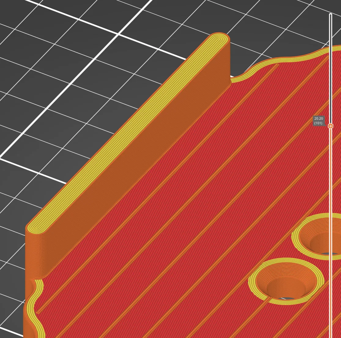 Mình sử dụng tính năng Generic-Box modifier trong Prusa Slicer cho phần gờ chặn (side stop) để tăng số lượng perimeters lên 7. Cách này giúp cấu trúc cực kỳ chắc chắn kể cả khi dùng nozzle 0.4 mm mà không cần infill.