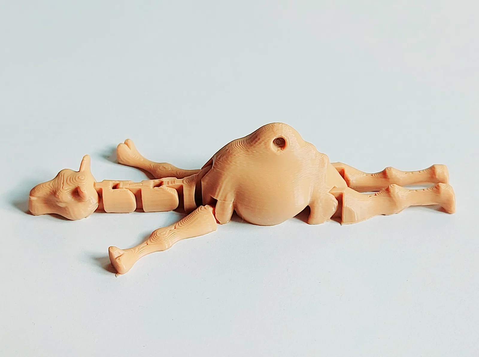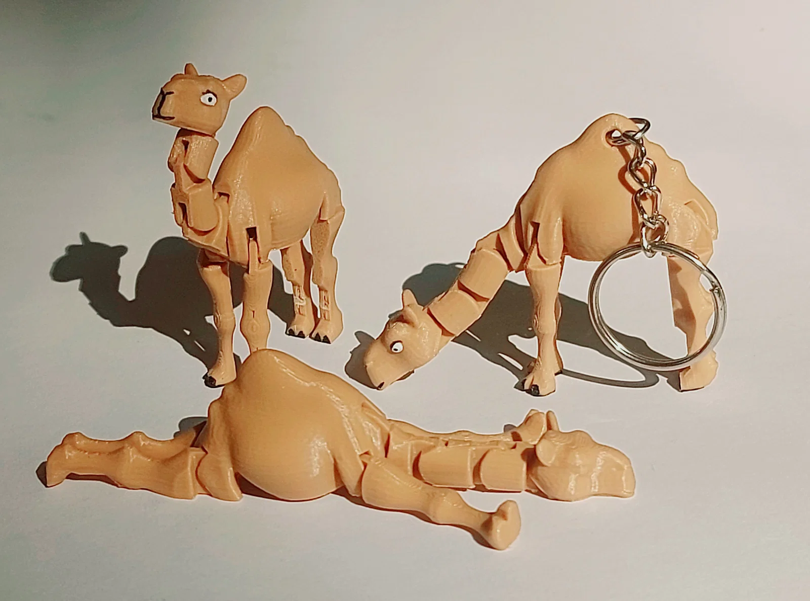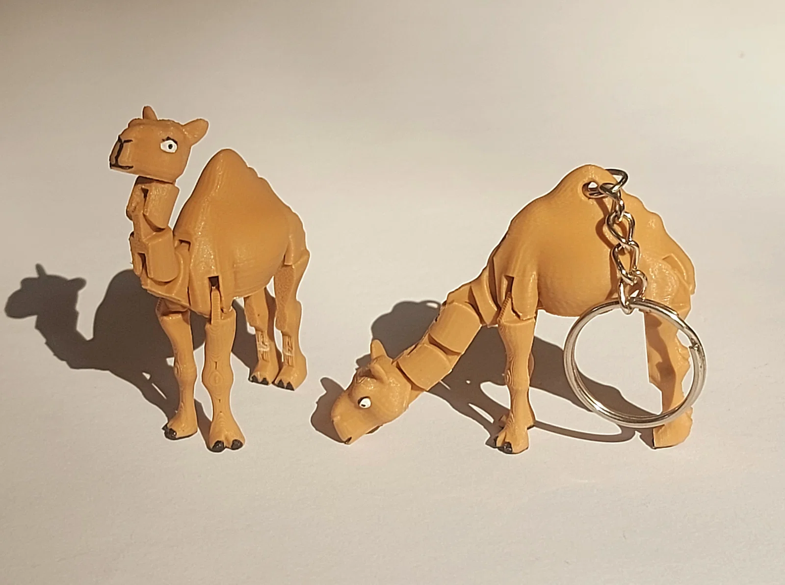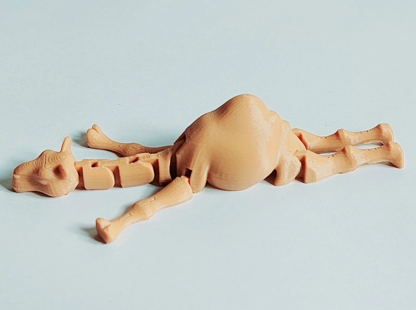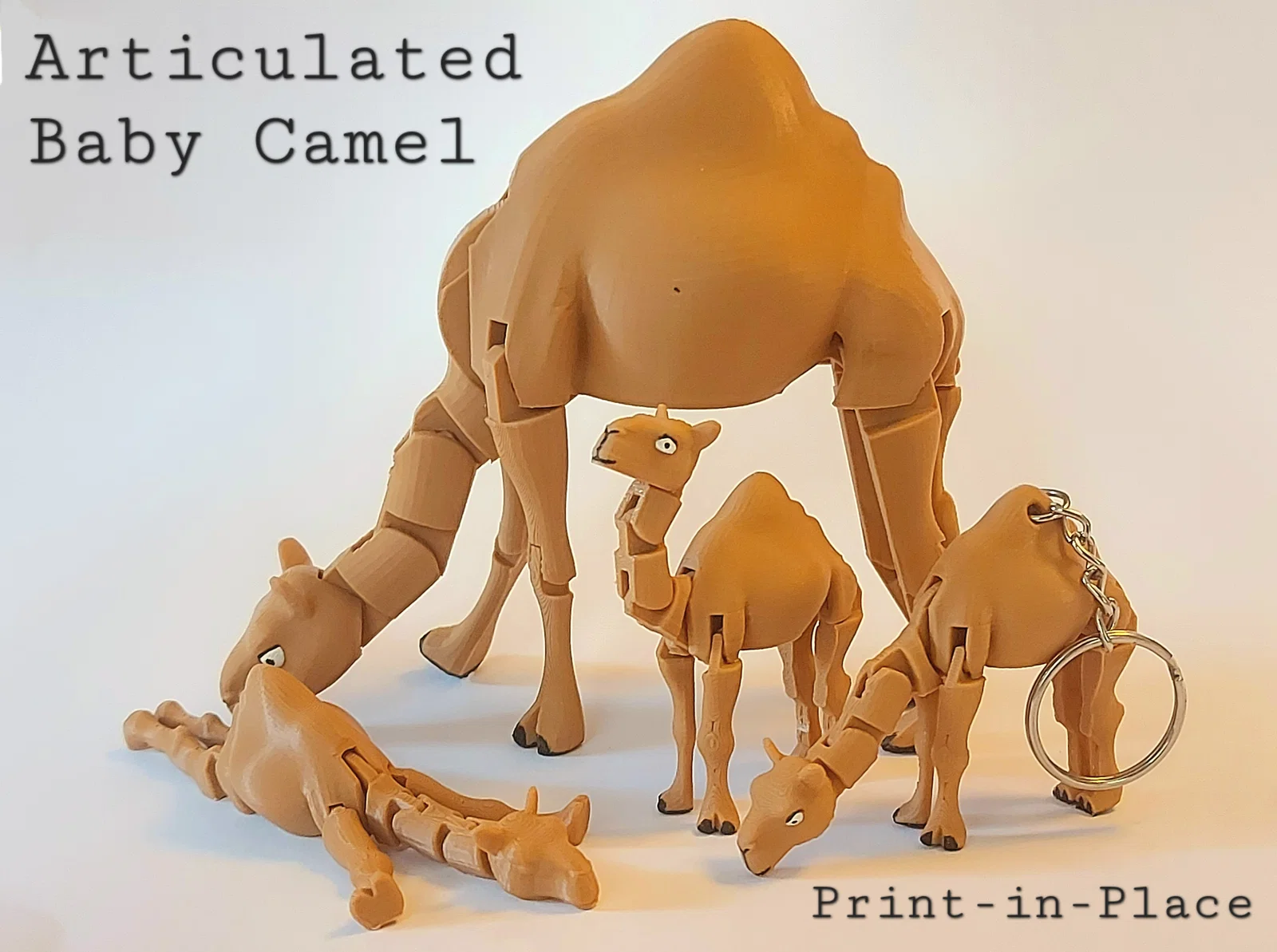 Mẫu Baby Camel (Print-in-Place) dễ thương, in liền khối không cần supports, có 10 khớp linh hoạt. Kèm bản keychain làm móc khóa. Cần bed adhesion tốt, có brim dễ tháo và 2 supports nhỏ ở chân sau.
