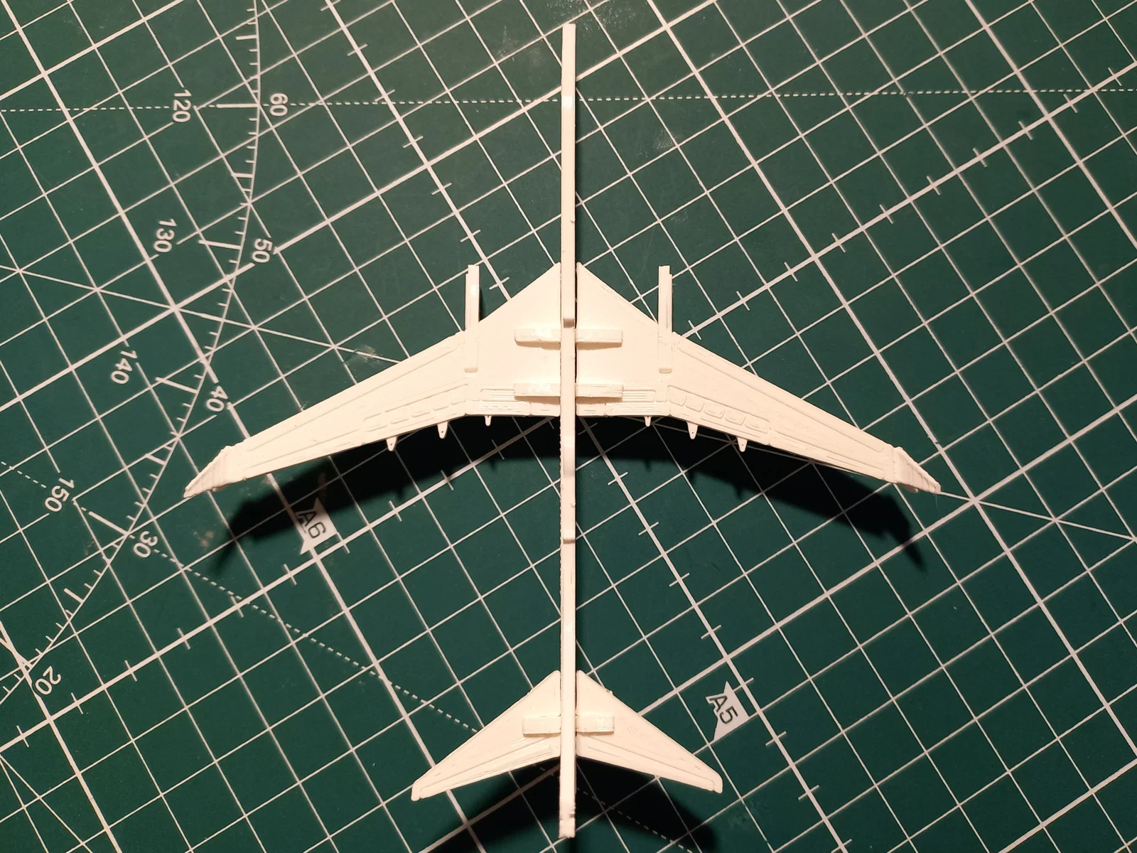 Nếu landing gear bị lệch cân, bạn bẻ nhẹ cái chốt phía sau xuống. Bẻ winglets nhẹ nhàng xuống khoảng 45° để tái hiện dạng split scimitar winglets.