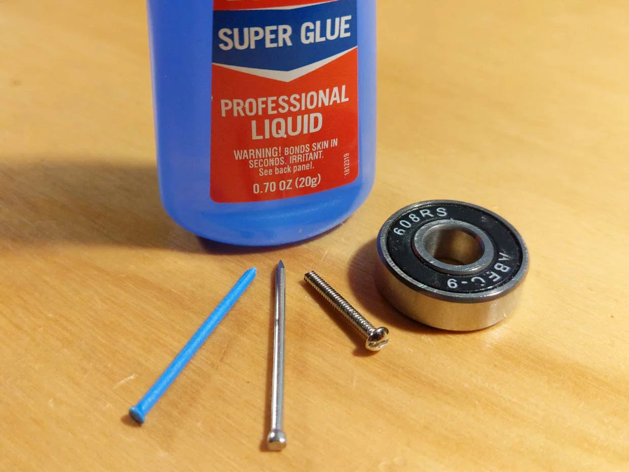 Bạc đạn (vòng bi) 608, đường kính 22mm, dày 7mm, tâm 8mm. Bạn có thể tận dụng từ mấy cái fidget spinner cũ trong nhà... hoặc vòng bi ván trượt.