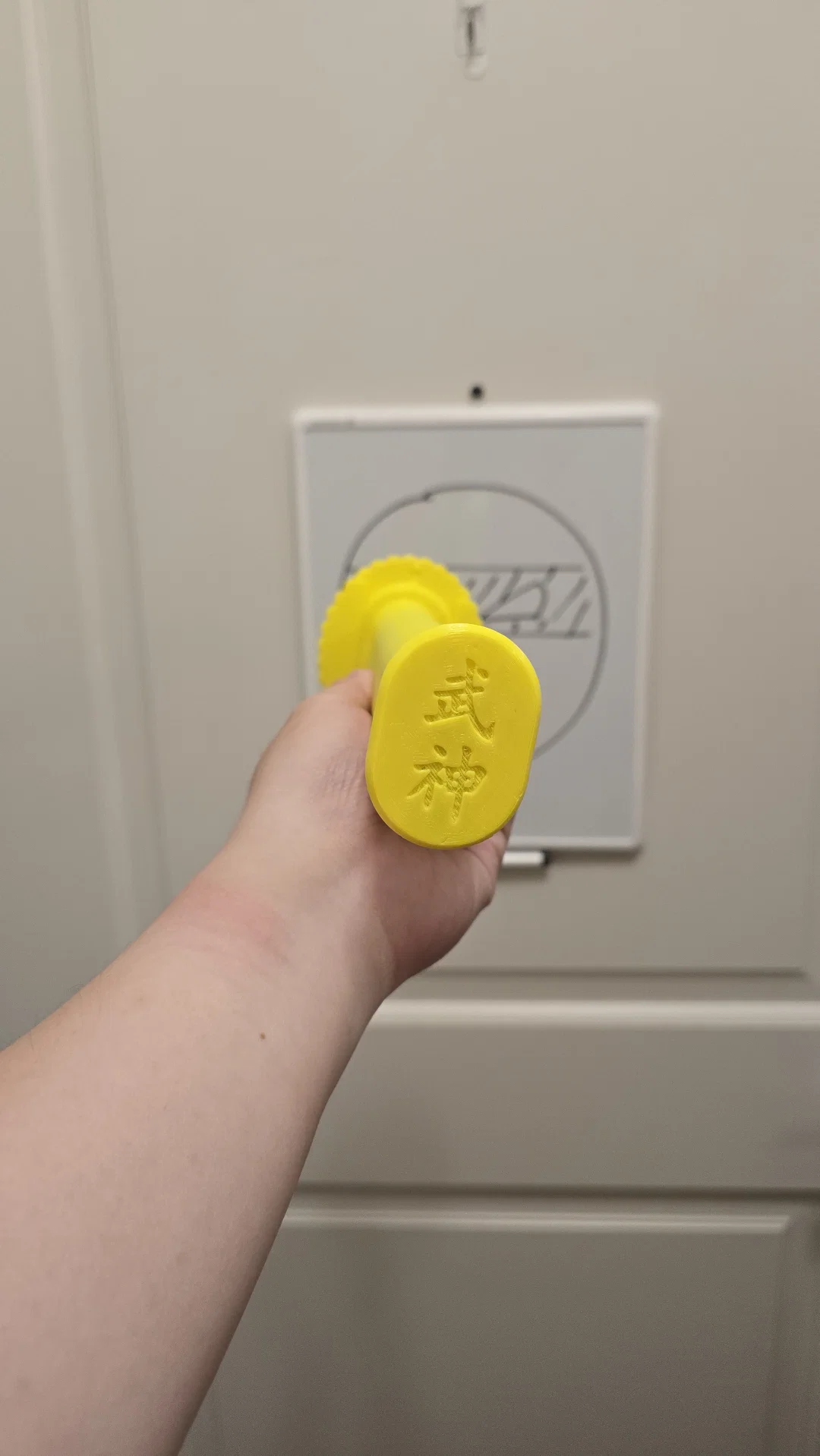 Chuyện bên lề: Phần nắp đuôi kiếm có chữ “bujinkan” bằng tiếng Nhật. Đó là môn võ mà tui đang theo học, tui đã tạo ra nó từ vài tháng trước để khoe với mấy anh em trong võ đường. Hơn nữa, tui không ưng mấy mẫu trên mạng lắm. Đây là dự án in 3D đầu tiên và cũng là thứ làm tui tự hào nhất. Sau đó tui có in thêm vài cái làm quà tặng, rồi nghĩ bụng sao không đăng lên xem có ai thích không. Và đúng vậy, lưỡi kiếm tròn được thiết kế để dùng trong tập luyện. Tuy nhiên, một thanh kiếm rỗng thì không bao giờ đủ độ bền cho việc đó cả. Nhưng mà thôi, nhìn nó vẫn rất ngầu.