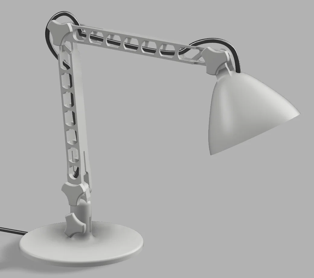 Mẫu Work lamp là đèn làm việc có thể điều chỉnh, in 3D với các tay đèn dạng khớp. Hướng dẫn đi kèm liệt kê linh kiện (đầu LED 50mm, vít M4, ốc ren) và các bước luồn dây, hàn lại đầu đèn.