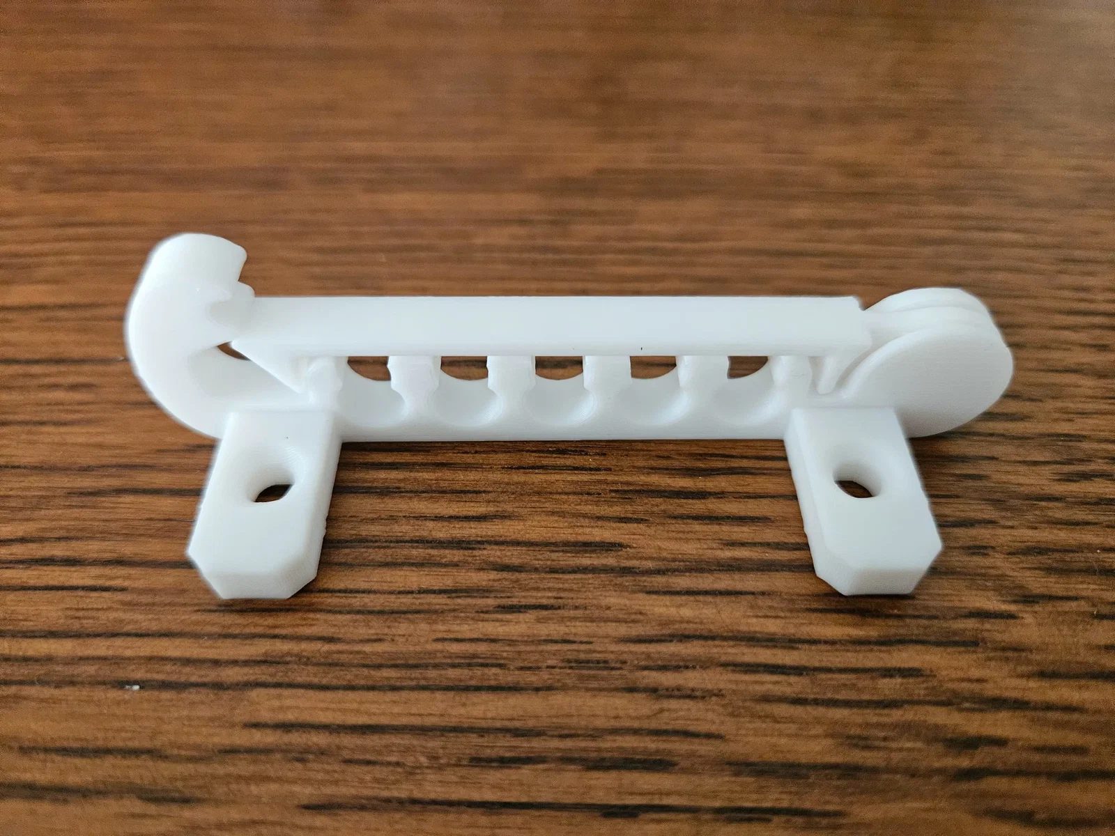 Mình làm cái này để gom gọn một đống dây đi xuống tầng hầm. Mình muốn giữ cho tụi nó thẳng hàng trước khi đi loạn qua các j-hooks. Mình in theo chiều dọc (phần kẹp mở lên) và không cần supports trên Flashforge ADM 5 Pro. Sau đó mình dùng tua vít nhỏ nạy cho khớp xoay (pivoting joint) được trơn lại. In một lần là xong.