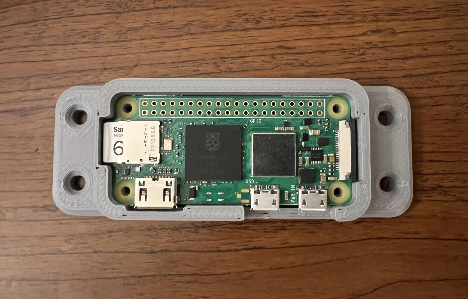 Đây là một cái case cho Raspberry Pi Zero 2 W. Thiết kế phần đáy case và nắp có thể tùy biến để mở lộ hoặc che các cổng khác nhau trên Raspberry Pi, cũng như chọn lỗ bắt vít gắn bên trong hoặc bên ngoài. PCB của Raspberry Pi được giữ cố định nhờ nắp case, nắp được bắt bằng vít M2.5 đầu lục giác chìm (socket-head). Bản thân case có thể được bắt lên bề mặt bằng vít M3 đầu bằng (flat-head). Bề ngang case là 1.5in [38mm], tiện để bắt lên gỗ tiêu chuẩn 2x* (hệ inch) ở Mỹ.