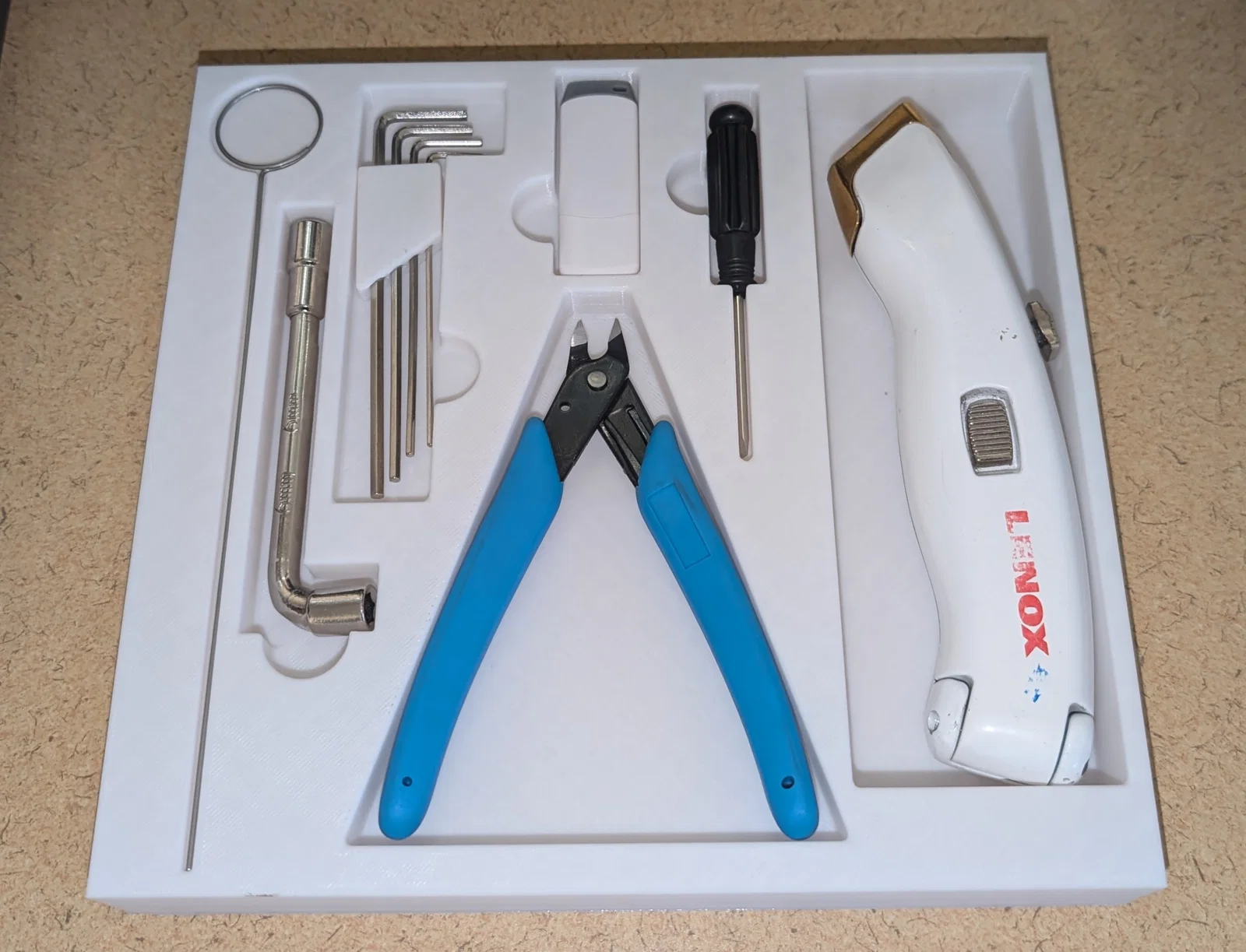 Việc in khay này không chỉ giúp bạn giữ bàn làm việc sạch sẽ mà còn bảo vệ các dụng cụ tránh bị trầy xước hoặc hư hỏng do va đập. Đây thực sự là một phụ kiện "phải có" đối với bất kỳ người chơi in 3D nào muốn tối ưu hóa quy trình làm việc và giữ gìn các món đồ nghề của mình bền lâu hơn theo thời gian.