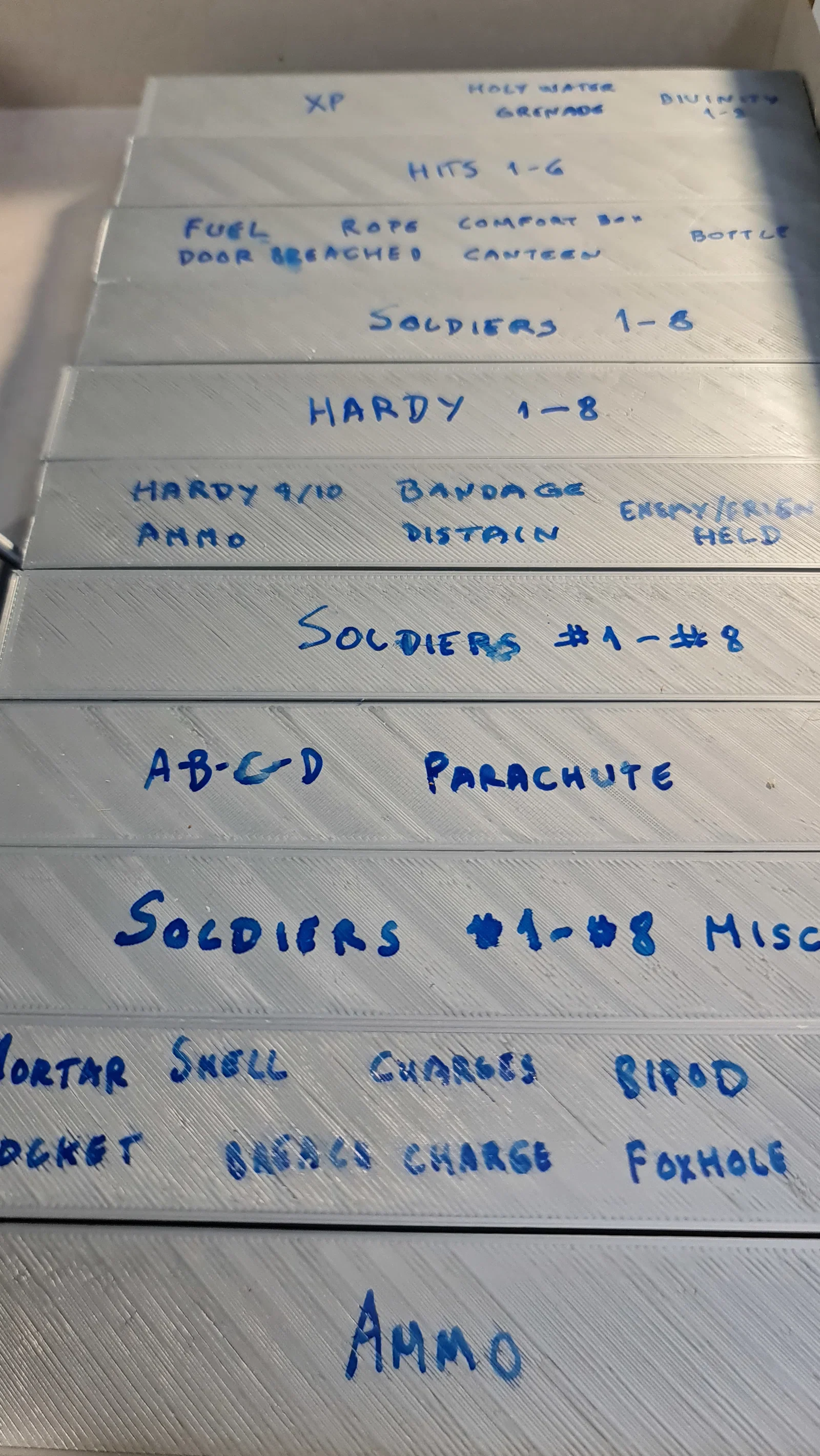 Bộ khay in 3D tiện lợi giúp sắp xếp gọn gàng các token và counter trong dòng game chiến thuật Warfighter của DVG. Thiết kế thông minh với sức chứa lớn, giúp bạn dễ dàng quản lý phụ kiện và tiết kiệm không gian trên bàn chơi.