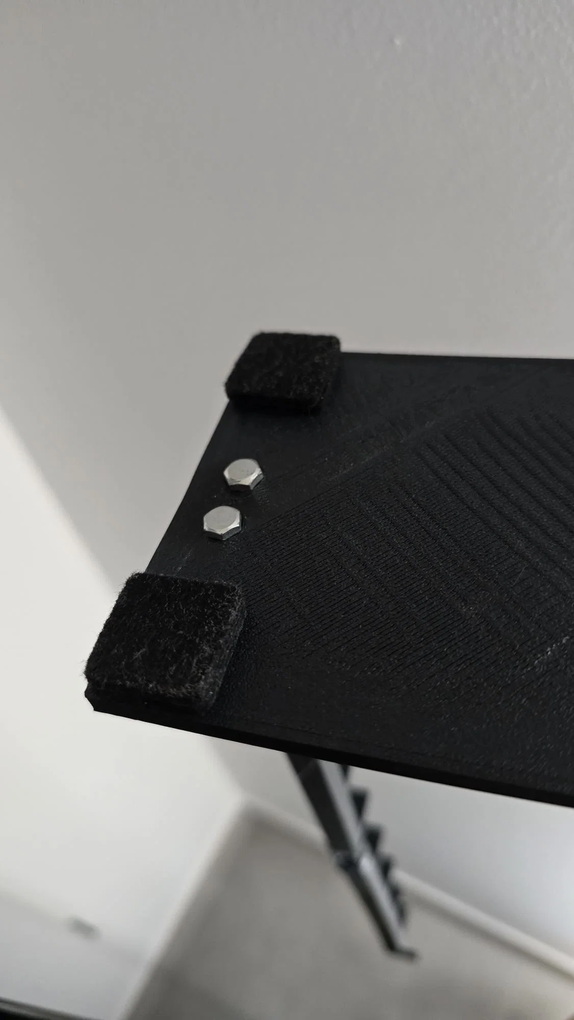 Trong quá trình lắp, phần đáy được gia cố bằng 4 vít M4x12, lắp vào có hỗ trợ gia nhiệt để vít bám chắc và khít hơn. Ngoài ra, có thể dán thêm các miếng nỉ (felt pads) ở mặt dưới để nâng holder lên nhẹ, hạn chế trầy xước bề mặt đặt và tăng độ ổn định.