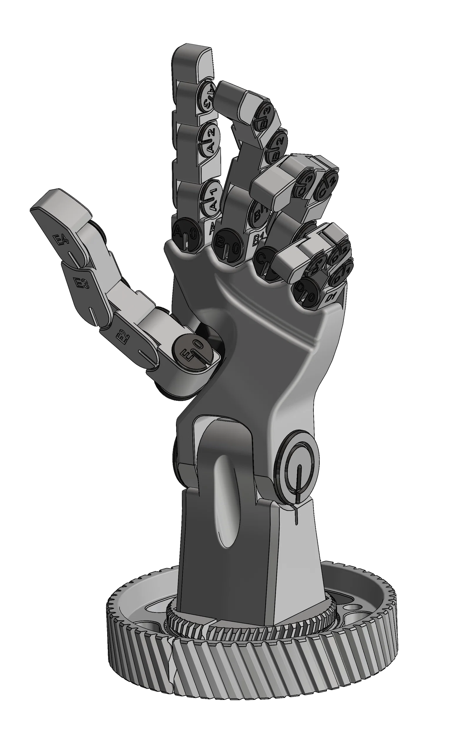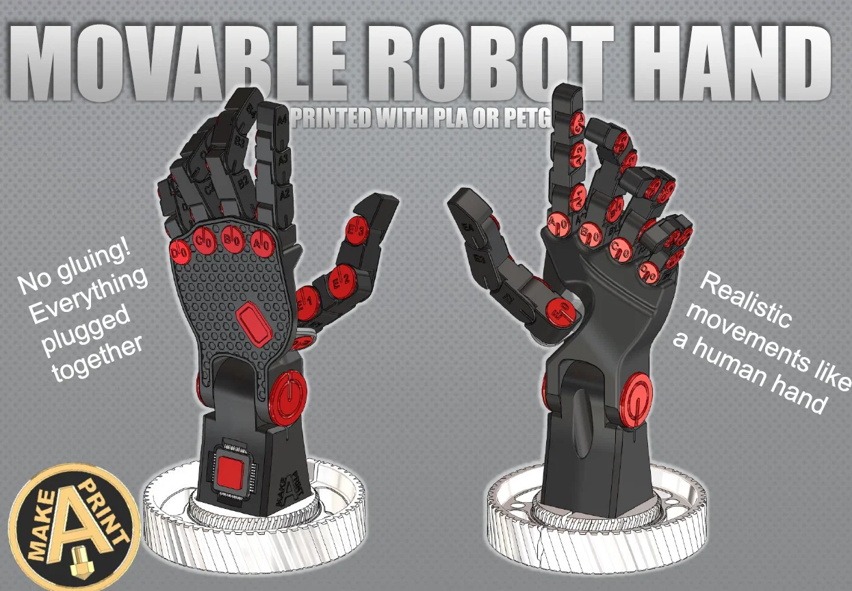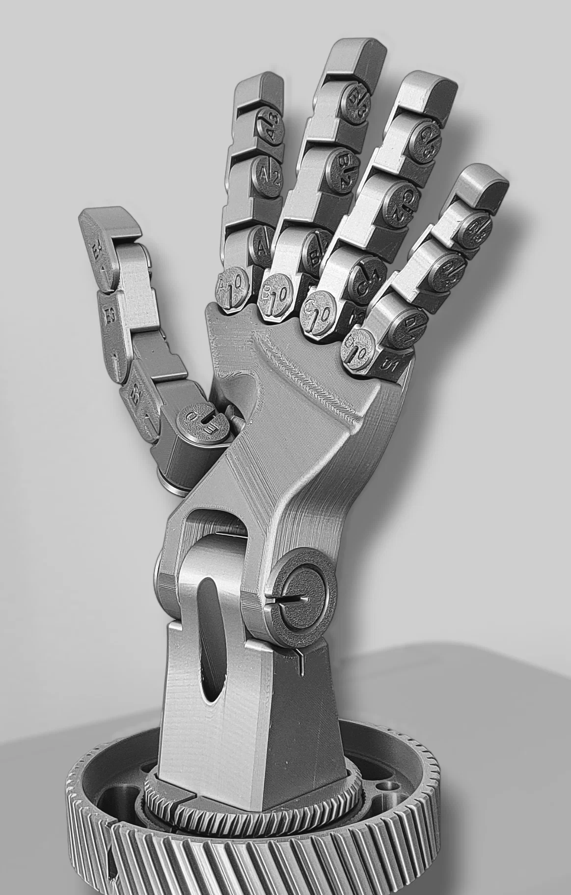 Phiên bản đầu tiên của bàn tay robot in 3D hoàn toàn, lắp từ nhiều chi tiết và vẫn cử động mượt. Khớp có cơ chế khóa giúp giữ vị trí chắc. Có kèm STL/STEP và thông số in PLA để bạn in và ráp dễ dàng.