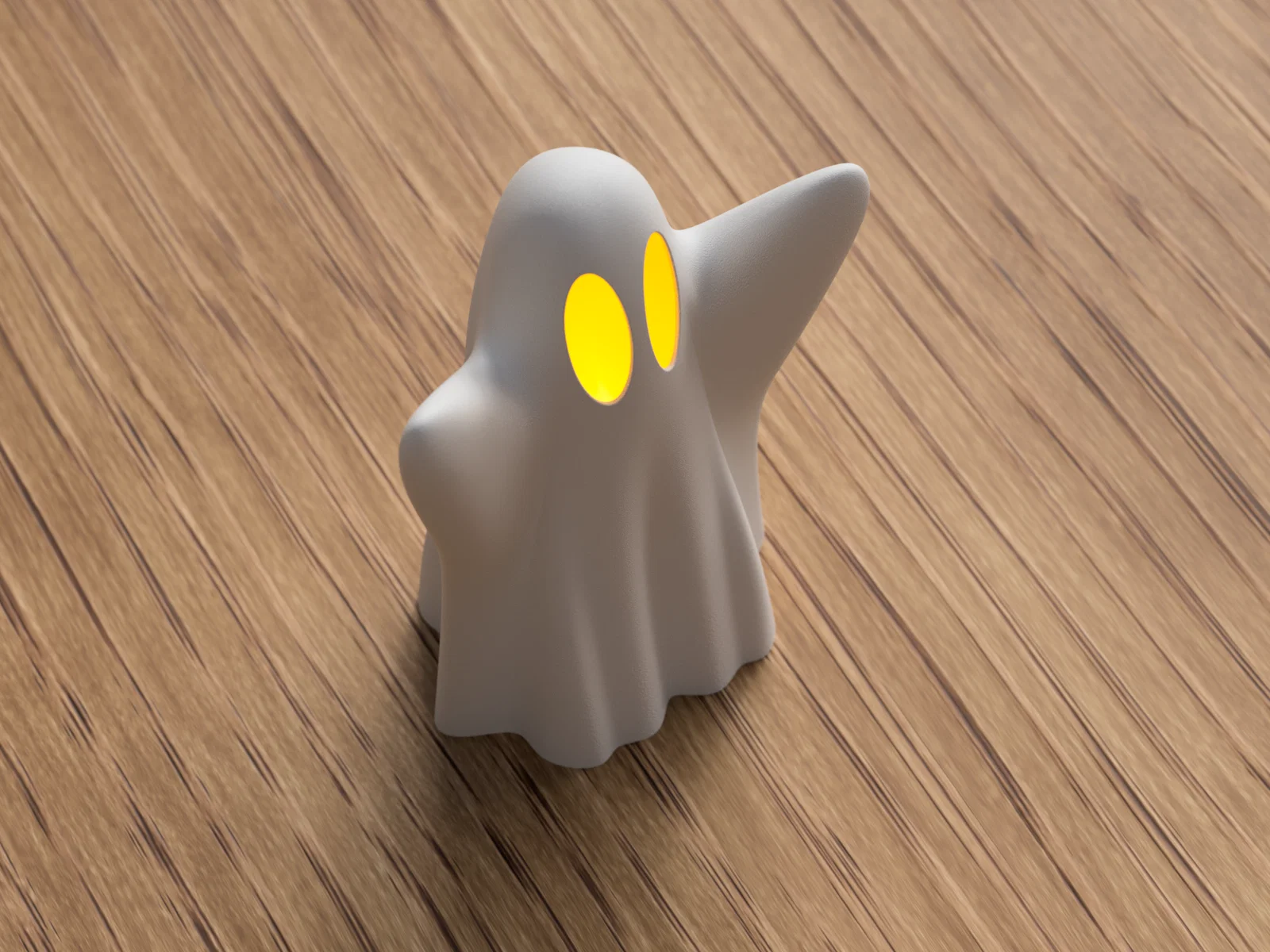 Một con ma rùng rợn có thể lắp vừa một đèn tealight điện tử. Dựa trên thiết kế Ghozty gốc của mình từ năm ngoái. Mẫu cao 117 mm và rộng 90 mm, bên trong rỗng với thành mỏng để tiết kiệm filament và giúp ánh sáng tealight xuyên qua khi dùng filament trong mờ (translucent). Mẫu đã được đặt hướng để làm mát tối ưu trong print profile đi kèm nên không cần support.