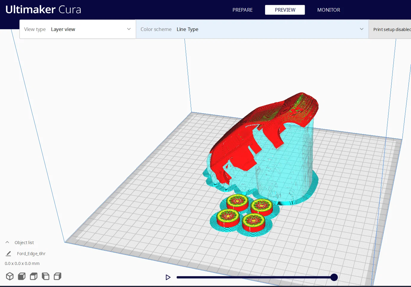 - Cấu trúc hỗ trợ (Supports): Do hình dáng xe có nhiều chi tiết nhô ra như hốc bánh xe và cản trước, bạn chắc chắn cần thiết lập support hợp lý để giữ được độ sắc nét.