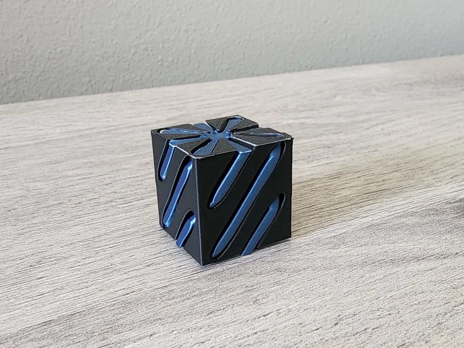 Thiết kế này không chỉ là một món đồ chơi fidget thông thường mà còn là minh chứng cho độ chính xác của kỹ thuật in 3D. Phần lõi bên trong được thiết kế với độ bù trừ kích thước (XY Size Compensation) là -0.4mm, tạo ra khoảng hở vừa đủ để khối này có thể di chuyển xuyên qua lớp vỏ ngoài mà không bị kẹt. Nếu bạn thích các cấu trúc hình học phức tạp và muốn thử thách khả năng in ấn của máy, thì mô hình này chắc chắn sẽ làm bạn hài lòng.