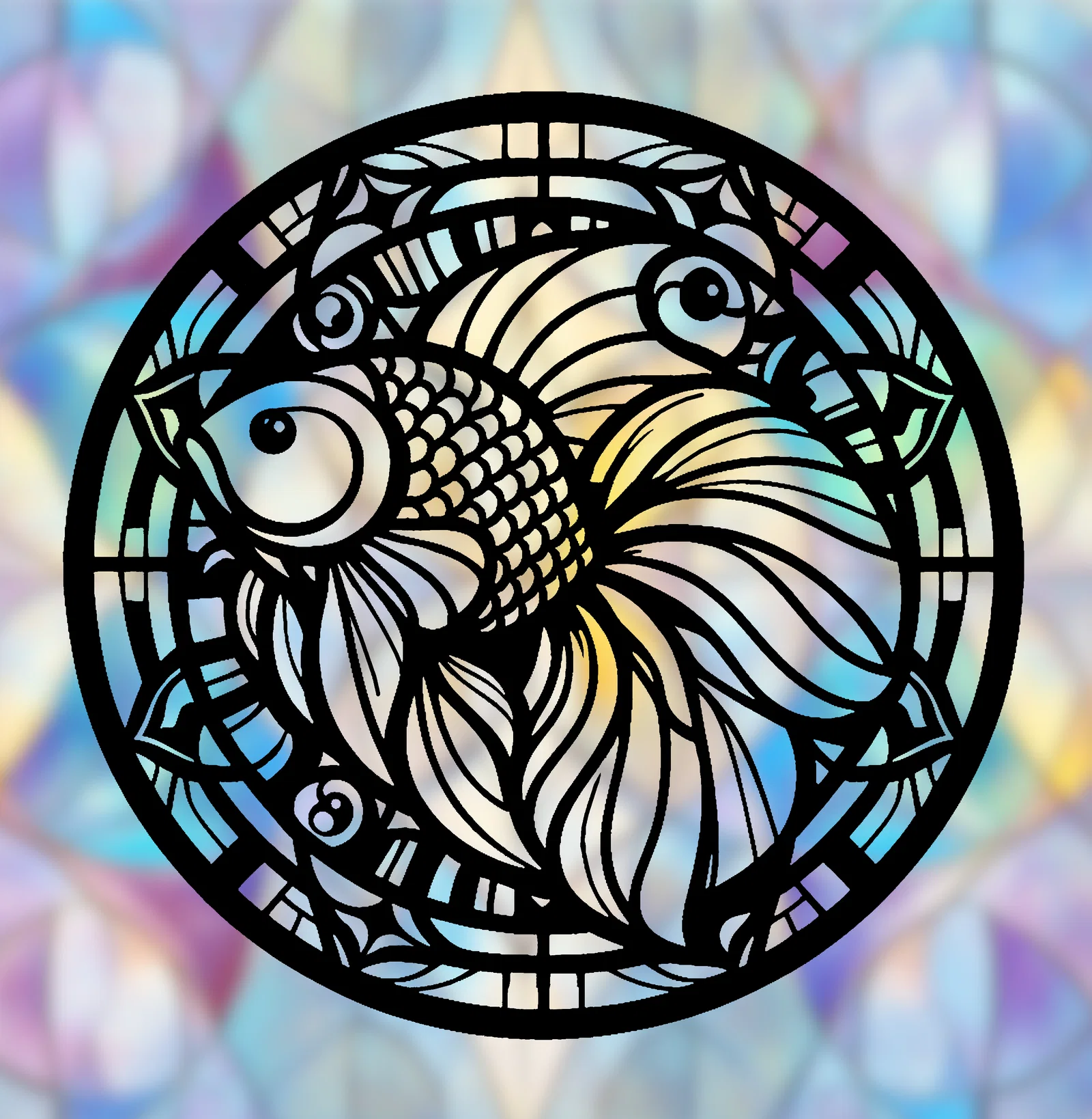 Mandala Cá Vàng – Wallart hình học 2D (Phong cách Stained Glass)