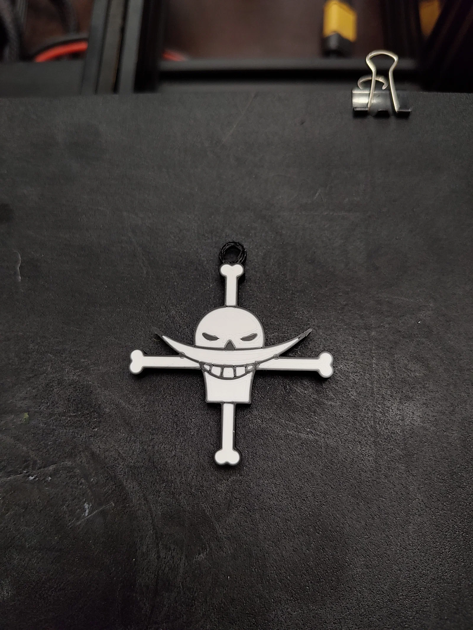 Mẫu móc khóa Whitebeard (One Piece) hỗ trợ in cho hệ multi-material hoặc in single với đổi màu theo layer. Hướng dẫn đổi filament: bắt đầu màu trắng, tới layer 14 chuyển sang màu đen (layer height 0,2).