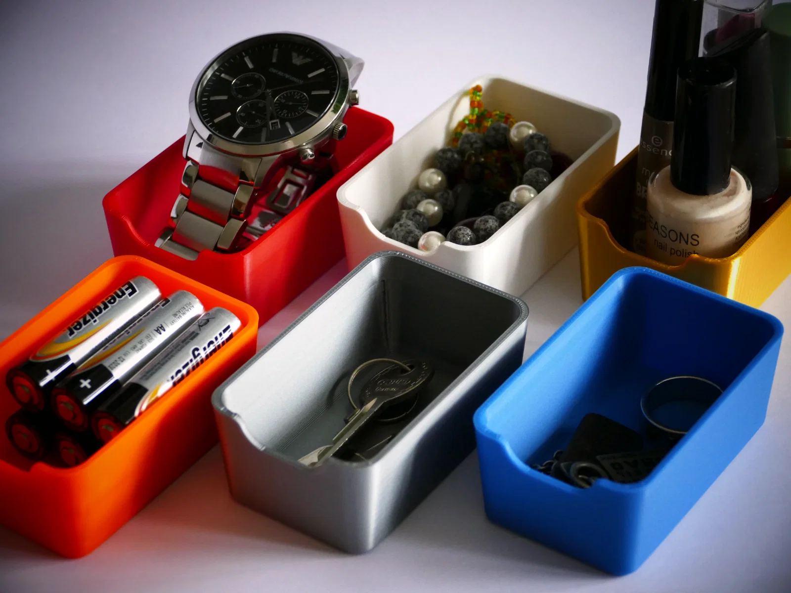 Điểm đặc biệt nhất của BOX-I chính là khả năng xếp chồng lên nhau một cách vững chãi. Bạn có thể in nhiều hộp với các màu sắc khác nhau để dễ dàng phân biệt các loại linh kiện, đồ dùng học tập hoặc đồ trang sức nhỏ. Với kích thước nhỏ gọn là 80mm x 50mm, chiếc hộp này cực kỳ linh hoạt để đặt ở bất cứ đâu, từ ngăn kéo hẹp đến góc bàn làm việc hạn chế diện tích. Kiểu dáng được thiết kế có phần khuyết ở mặt trước giúp bạn quan sát và lấy đồ vật bên trong một cách thuận tiện nhất.