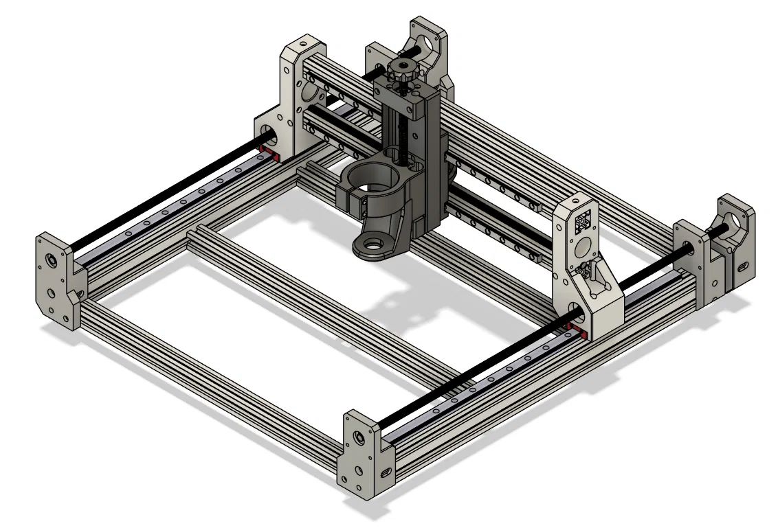 Con CNC này dùng 2 thanh trượt tuyến tính MGN12H cho trục Y, và 2 thanh trượt tuyến tính MGN9 hoặc MGN12 cho trục X. Trục Z dùng ty trượt 8mm và bạc đạn LM8LUU. Chuyển động được truyền bằng motor Nema17 với vít me thang 8mm (trapezoidal screws).