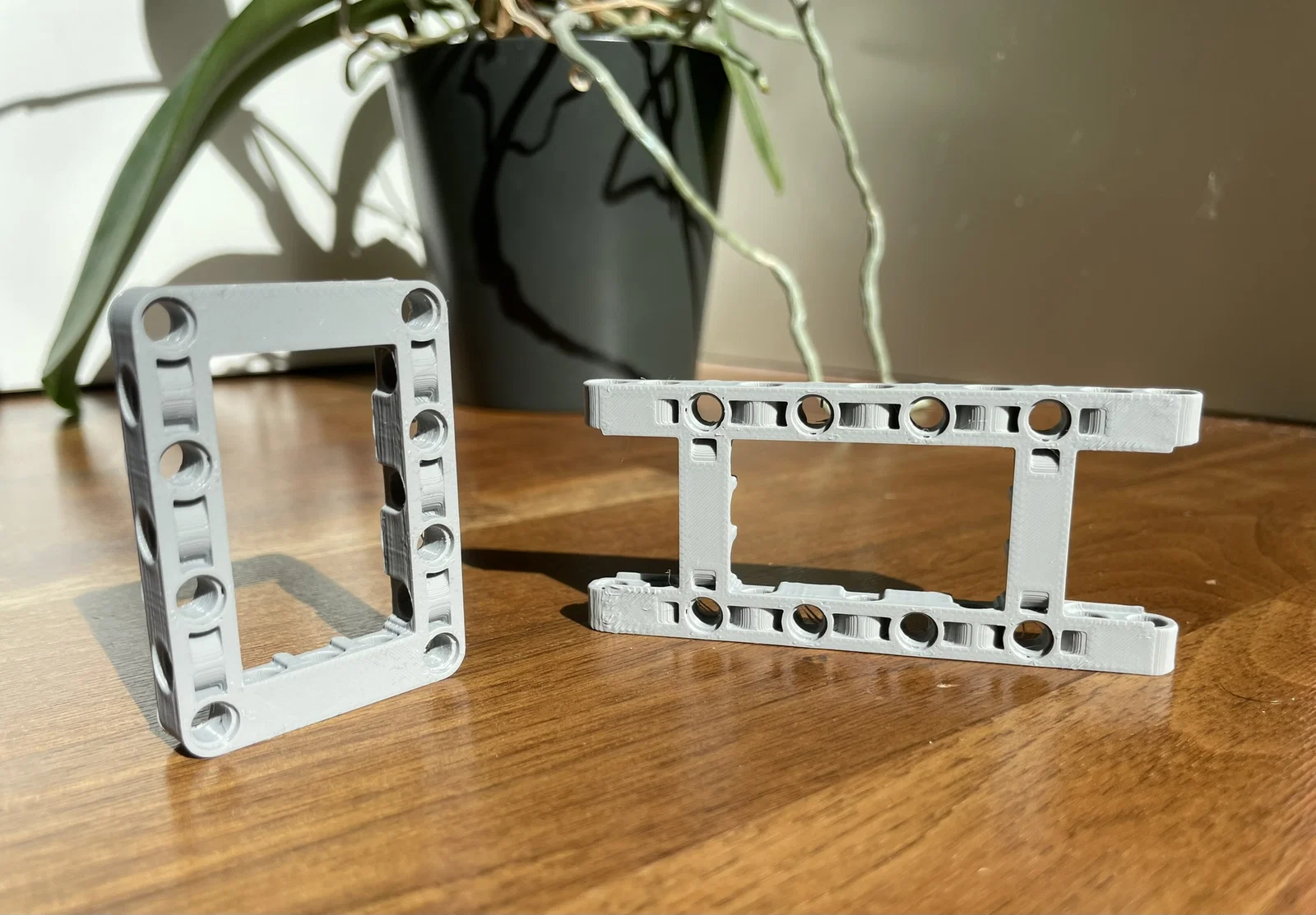 Khung LEGO-Technic-Compatible Frame tương thích với pin/axle Lego Technic tiêu chuẩn, dùng cho nhiều ứng dụng kết cấu. Có cả bản kéo dài. Gợi ý in: layer 0.12–0.15mm, cooling cao, tốc độ chậm; thường không cần support khi in nằm.