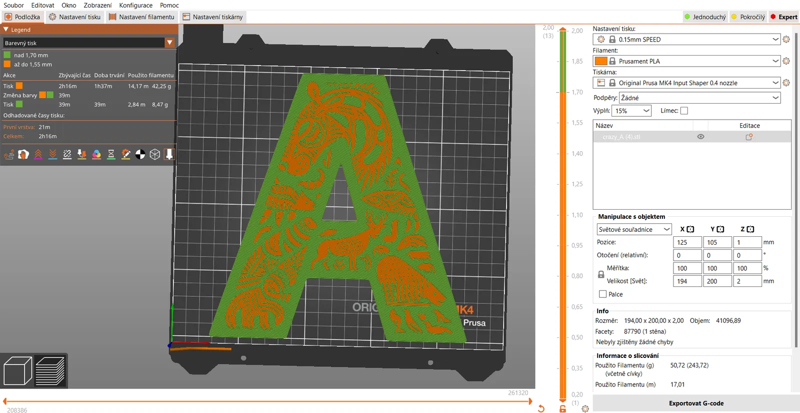 - Chiều cao lớp (Layer height): Ưu tiên thiết lập từ 0.12mm đến 0.2mm để các chi tiết họa tiết thú được sắc nét nhất có thể.
