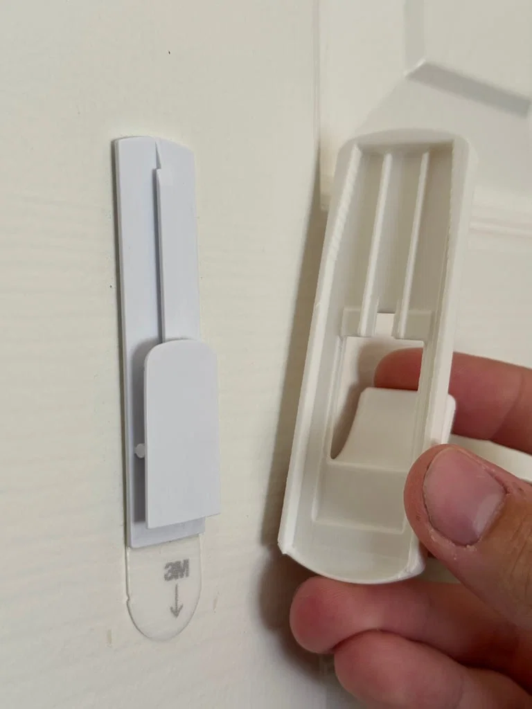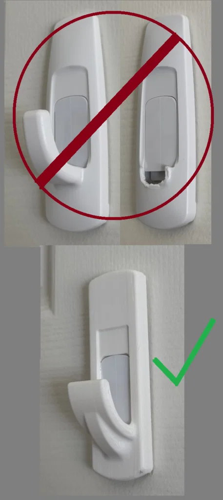 Mình chán cảnh mấy cái Command hook 5lb bị gãy hoài mà thay cái mới thì mắc quá. Mẫu này sẽ kẹp (clip) vào cái đế gắn tường Command đang có sẵn để thay thế nhanh, rẻ. Khuyến nghị in nằm nghiêng (on its side) và dùng tree supports.