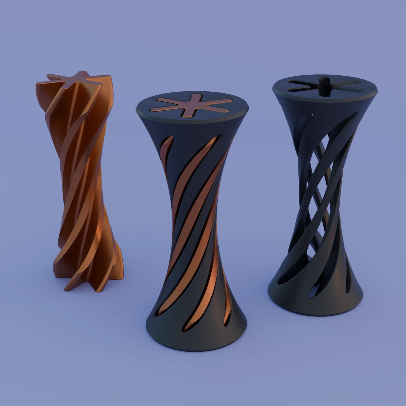 Phần ngoài (SpiralHourglass.stl) có thể hơi khó in, nên mình có thêm file SpiralHourglassSupported.stl. File này có 3 lớp bridge nối giữa các cột. Trước khi dùng, bạn cắt/bẻ mấy bridge đó ra bằng kềm cắt hoặc dao.
