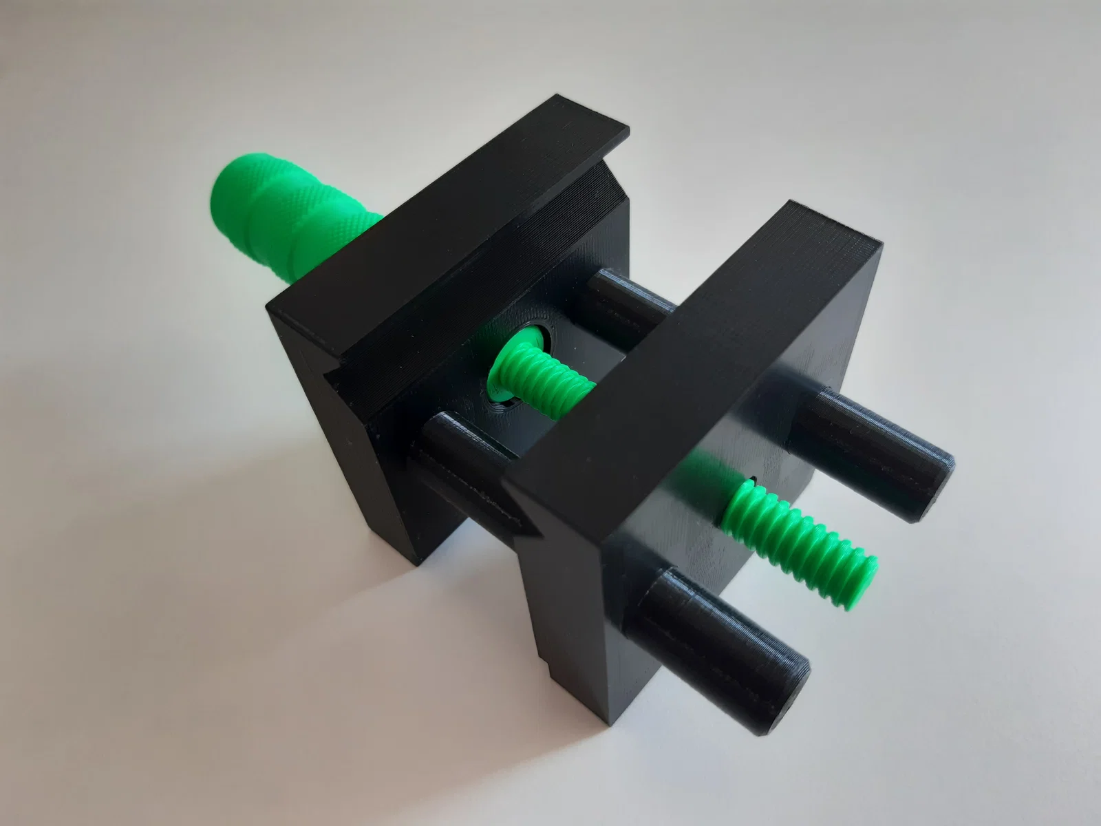 Mẫu ê-tô mini (mini vise) in 3D 100%: không cần vít, không cần keo. Có hướng dẫn lắp ráp, nhận diện chi tiết và mẹo in cho jaws và threaded axle (support on the plate only, thêm modifier fill 100%).