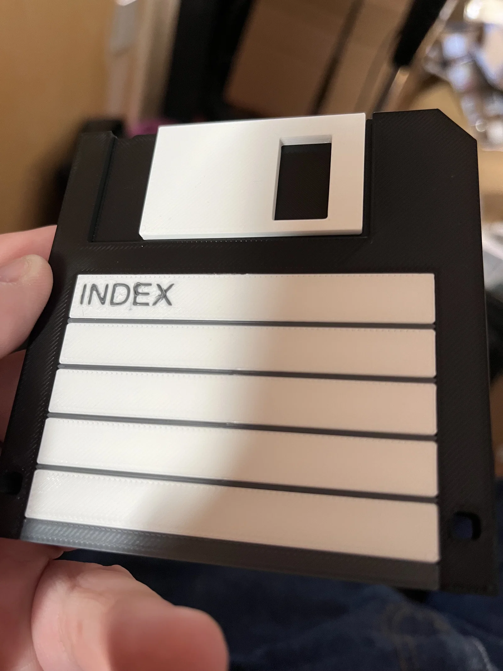 Bộ lót ly hình đĩa mềm, có kèm ví dụ label kiểu cổ điển dạng kẻ dòng, Doom và Keen. Có file Autodesk Fusion để tự làm label và file dự án Bambu Labs cho in Multimaterial. In nguyên khối hoặc dạng thay label trượt.