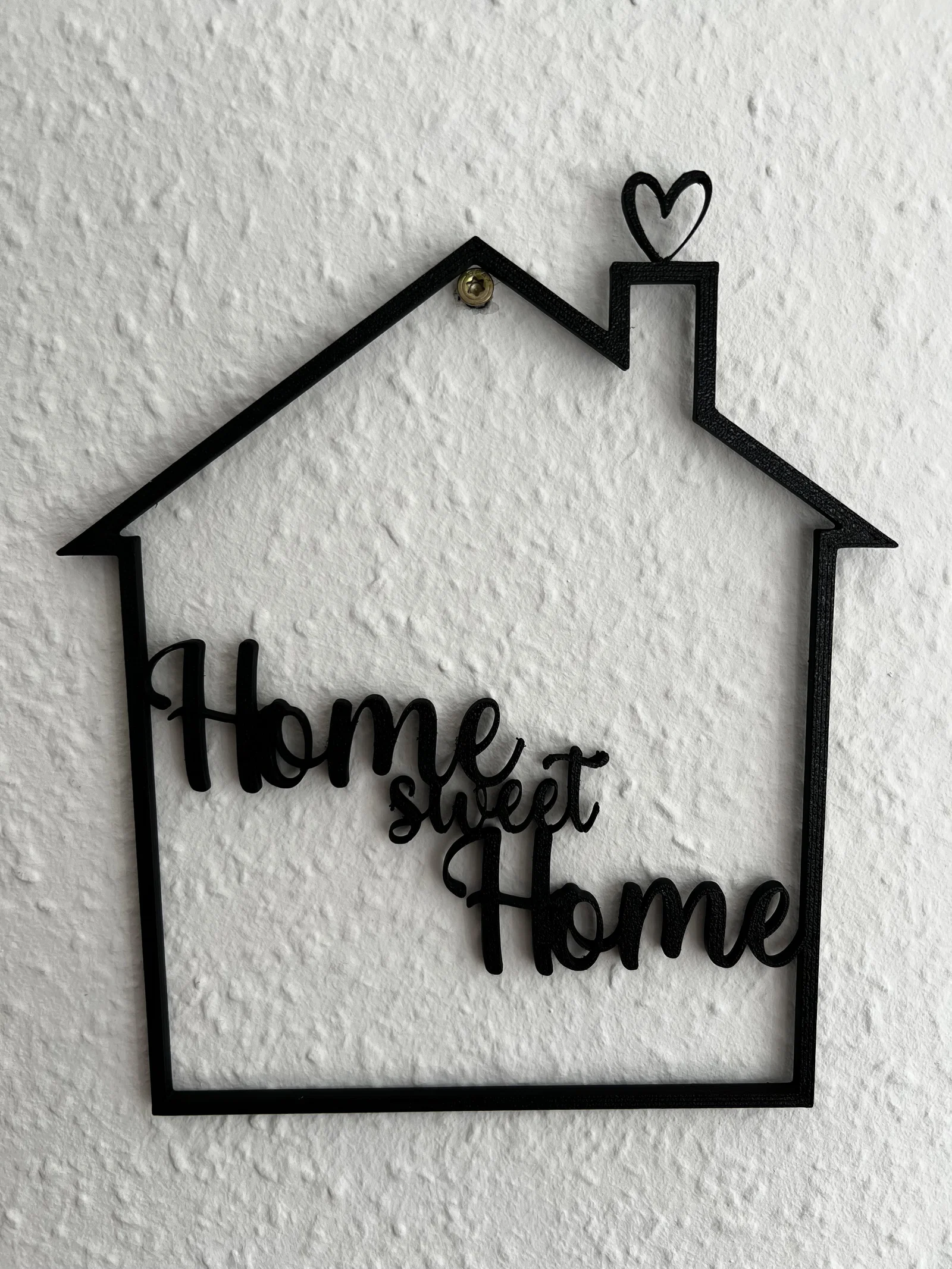 Mẫu “House/Home sweet Home + Base” được thiết kế để làm quà tặng trang trí: có thể đặt đứng trên đế hoặc tháo đế để treo tường. Có bản nhà trống để tùy biến. Khuyến nghị in PLA, layer height 0.2 mm.