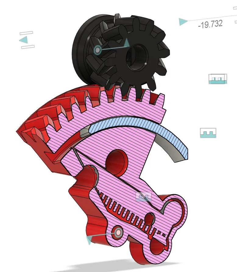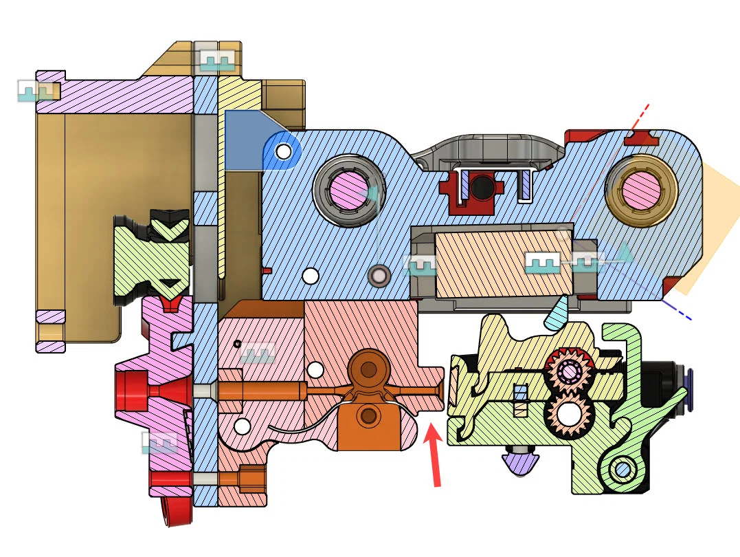 Bánh răng servo (Gear): Loại bỏ phần support tích hợp trong thiết kế beta7 vốn khó tháo và nguy hiểm, phần bánh răng đã sửa đổi giờ đây có thể in được mà không cần support.