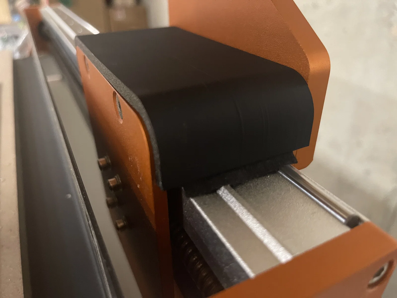 Tấm chắn bụi (Dust Guard) cho hệ roller trục X&Y của FoxAlien XE-Pro. Có rãnh 2.5mm hai bên để gắn nỉ hoặc chổi cắt theo chiều dài, giúp quét bụi và bảo vệ rail khi gia công.