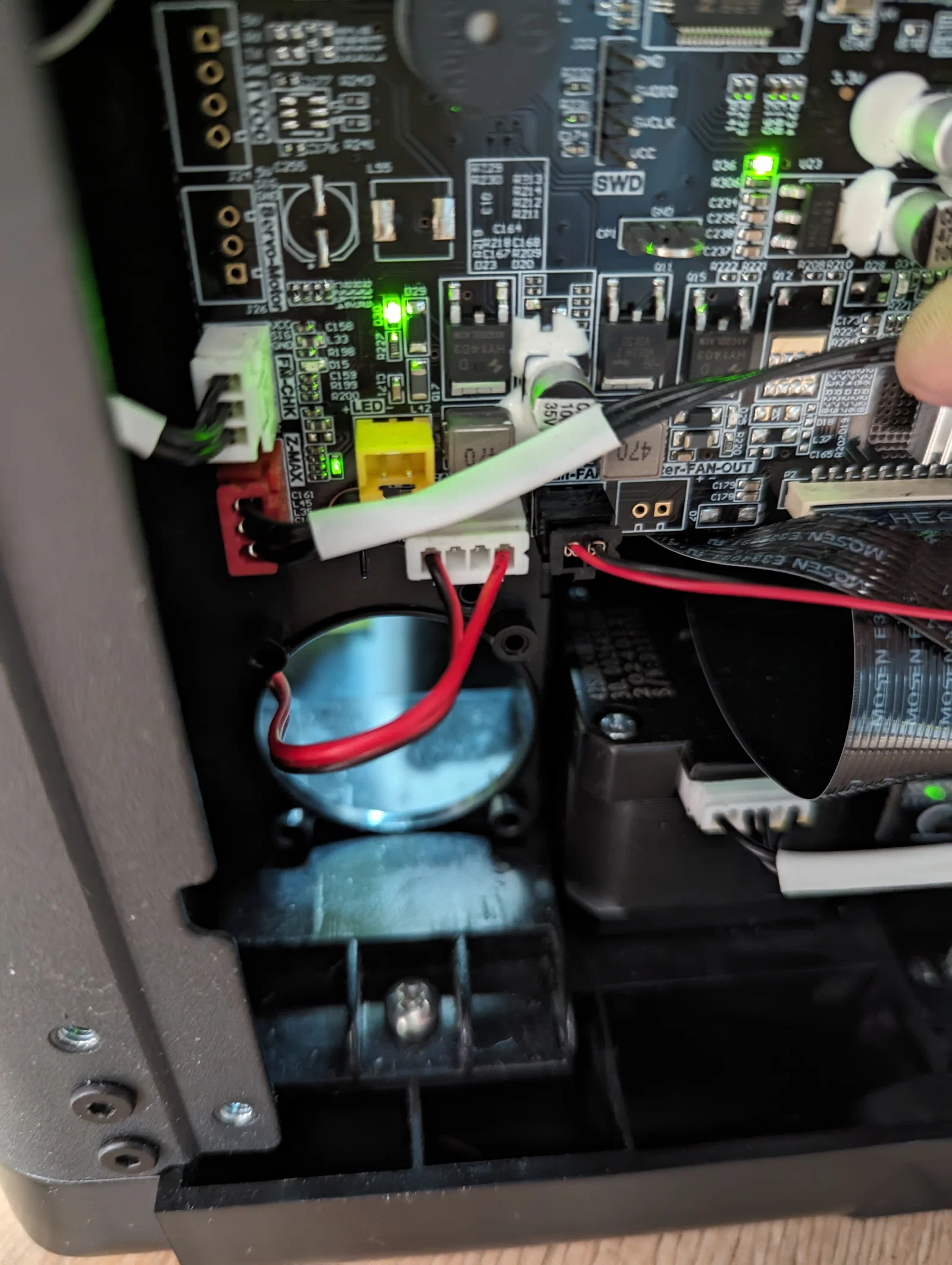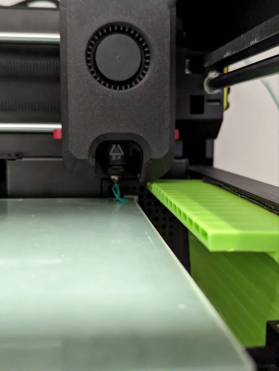 Mình gắn quạt bằng băng keo 2 mặt. Phần hơi khoai là lắp miếng trên. Nó phải nằm cách dưới printhead khoảng 1.5 mm. Nên cần canh bằng băng keo hoặc chêm thêm spacer.