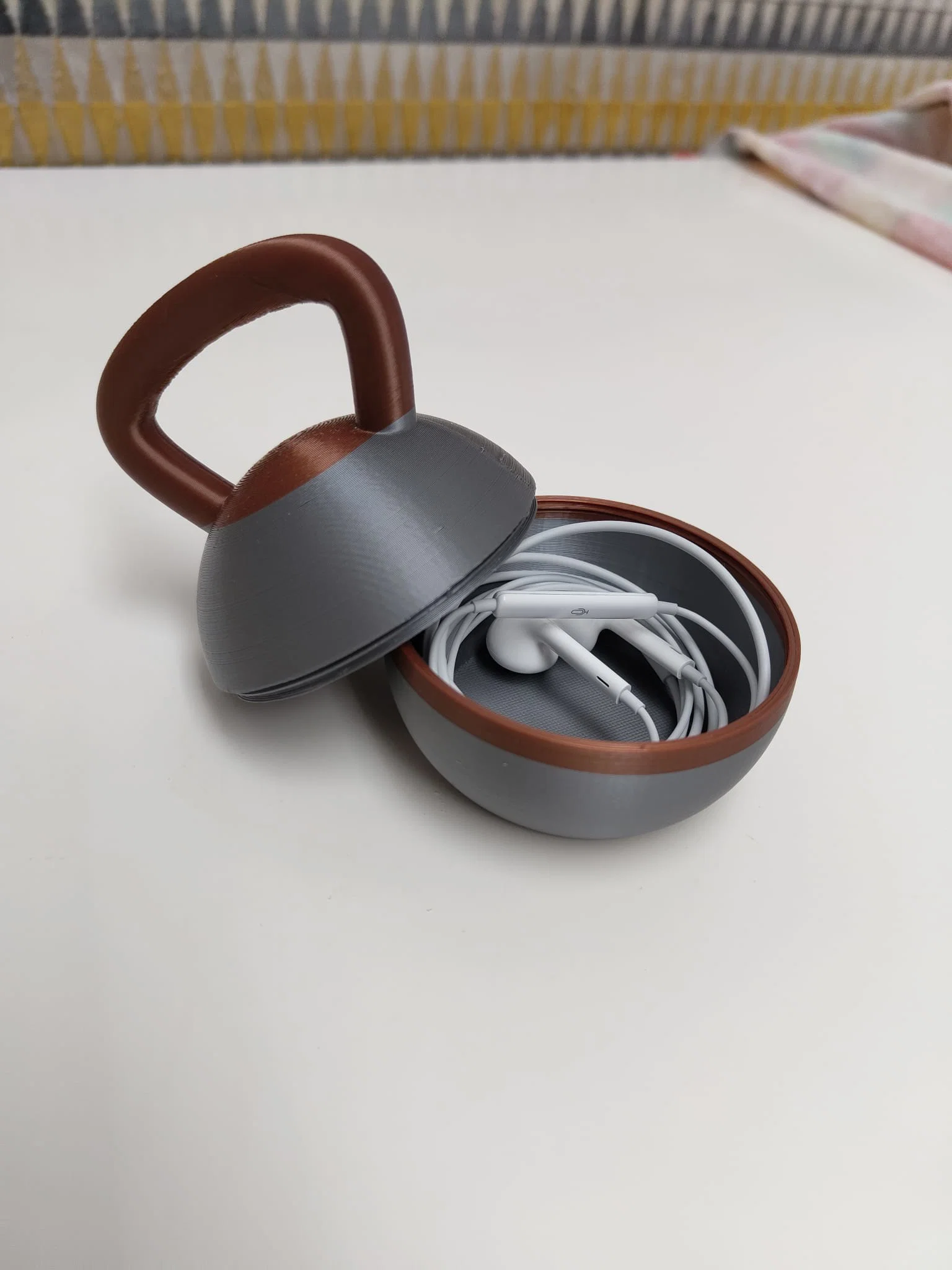 Mẫu Kettlebell đường kính 7,6 cm, có thể scale theo nhu cầu. Thiết kế 2 mảnh vặn ren, dùng làm hộp đựng protein, magnesium, chìa khóa, tiền xu hay tai nghe có dây. Dễ in, chịu va đập tốt.