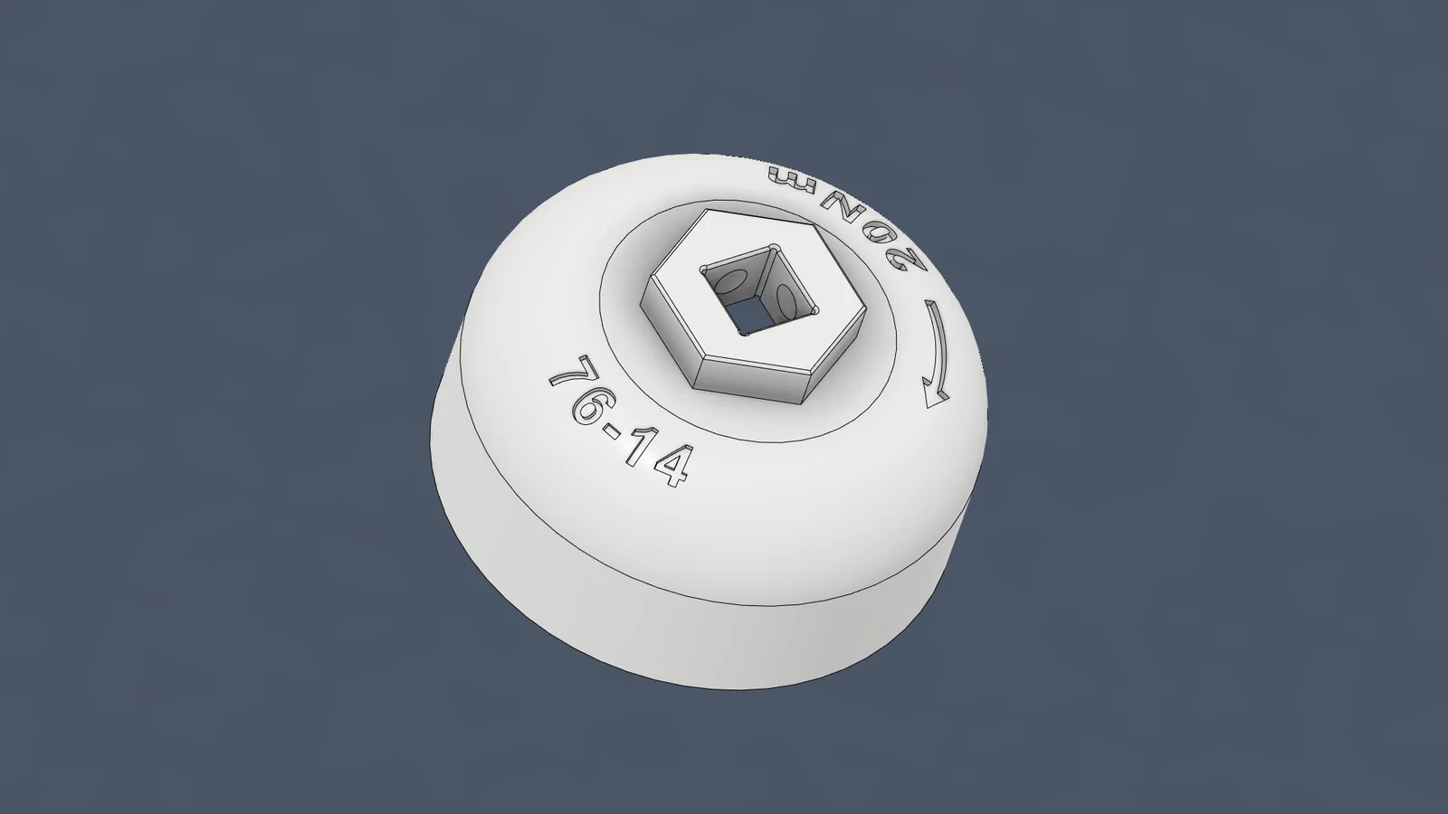 Dụng cụ 76mm dùng để mở và siết nắp lọc dầu, phù hợp nhiều động cơ VW, Porsche, Mercedes-Benz, BMW, Audi và Opel. Gợi ý in PLA+ với infill 40–50% và 4 wall lines.