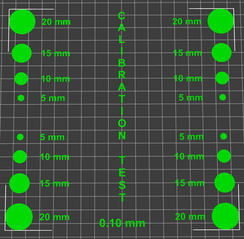 Mẫu Calibration Retraction Adhesion First Layer test dạng vòng tròn 20/15/10/5 mm kèm chữ trung tâm, giúp kiểm tra retraction, độ bám bàn in và chất lượng first layer nhanh. Có các mức single layer 0.10–0.30 mm.