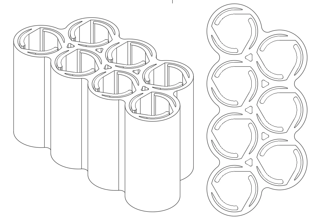 Mảng khay giữ 7 cell (7 cell holder array) cho cell “ELF BAR”