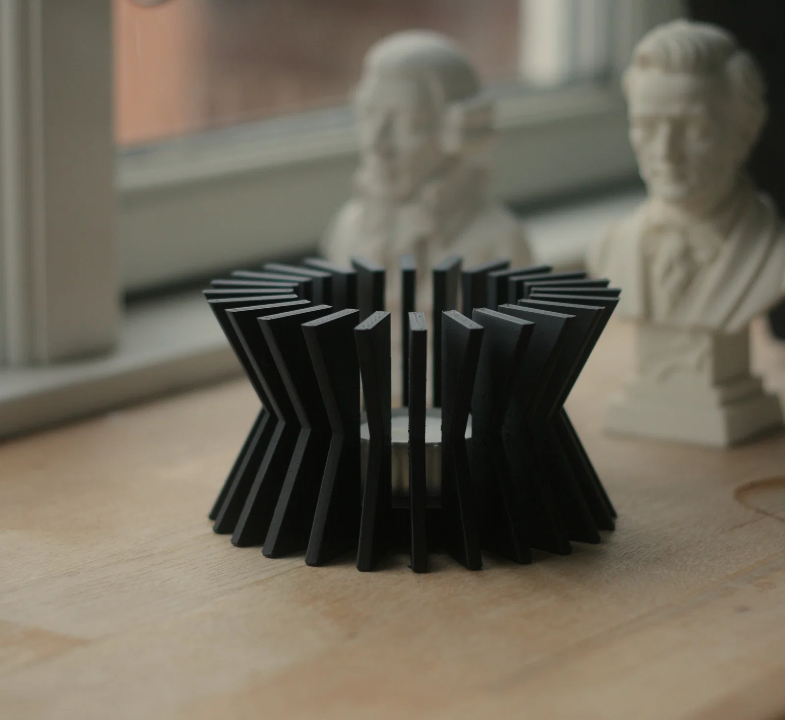 Bộ 5 chân nến tealight với 5 kiểu thiết kế khác nhau, phù hợp nến tealight đường kính 40mm. In đẹp với PLA matt, không cần support hay brim; lưu ý tinh chỉnh nhiệt độ để tránh stringing giữa các nan/cột.