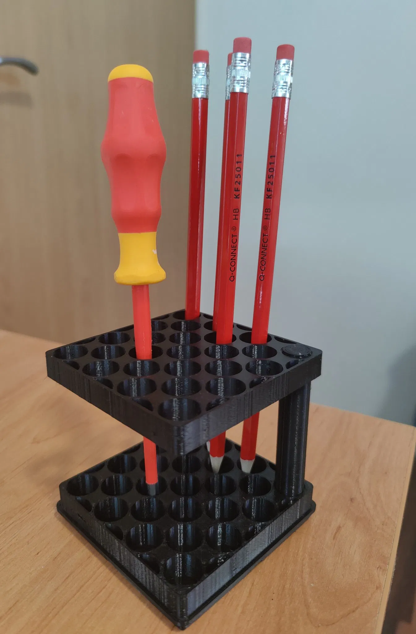 Một giá đỡ tương thích với Gridfinity cho bút, bút chì, tua vít và các vật thể hình dạng tương tự khác.